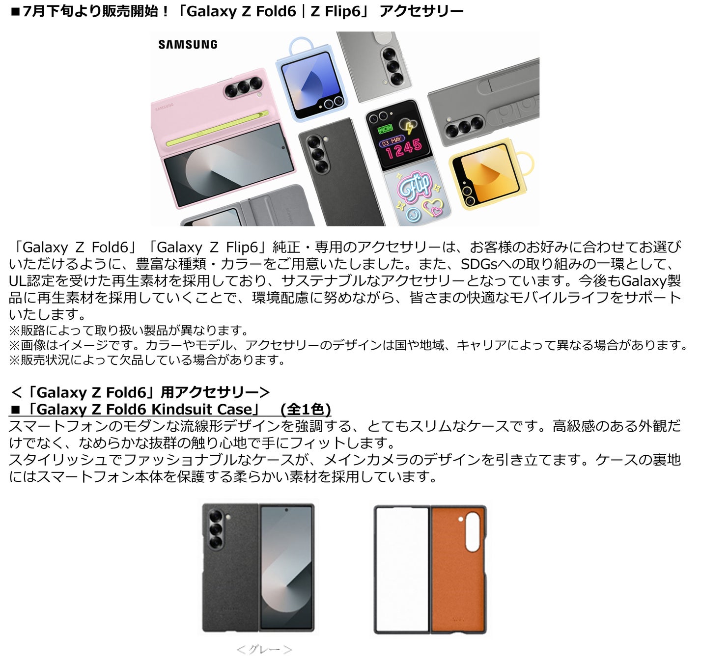 サムスン電子ジャパン株式会社(以下サムスン)は、新次元のGalaxy AIを搭載した初の最新折りたたみAIフォン「Galaxy Z Fold6」「Galaxy Z Flip6」および純正・専用アクセサリーを株式会社NTTドコモ(以下ドコモ)で発売決定したことをお知らせいたします。