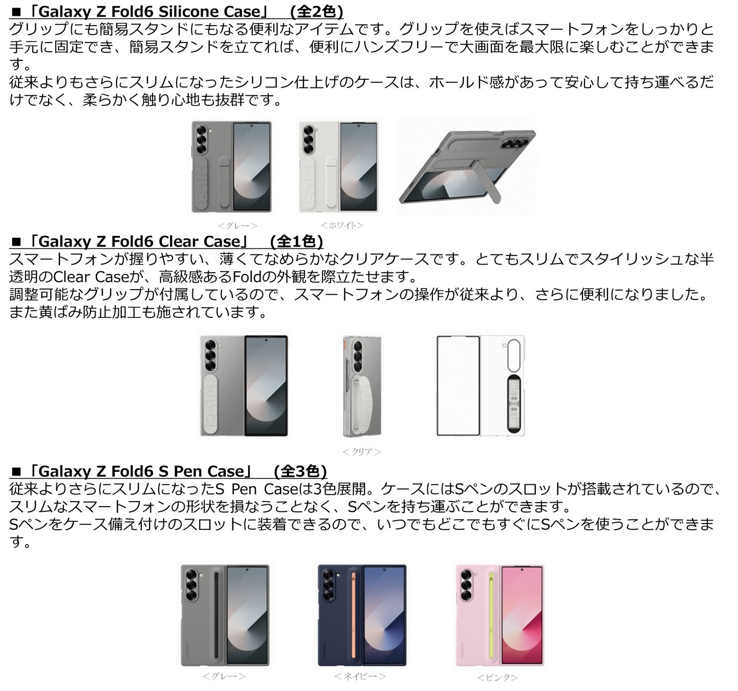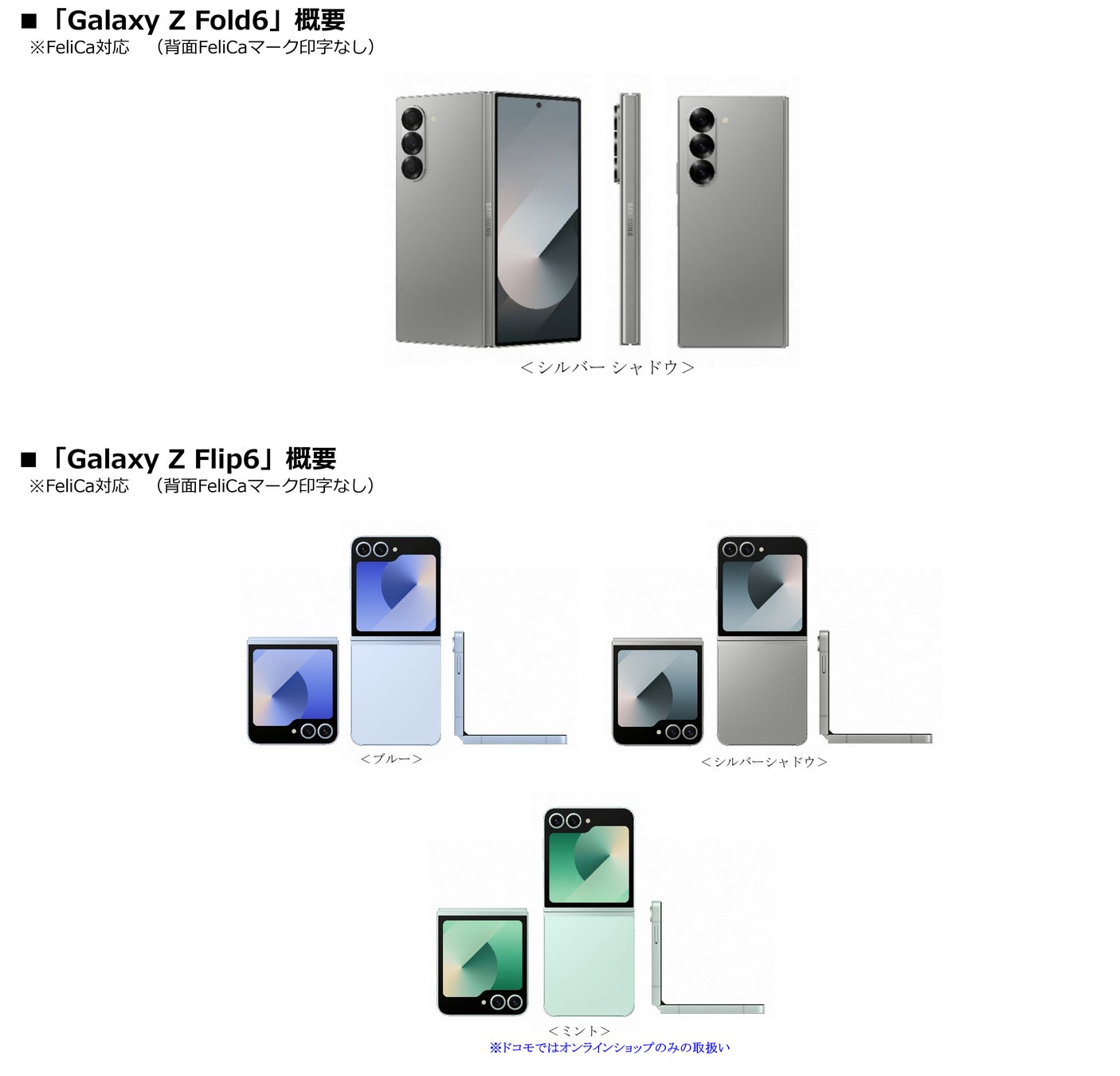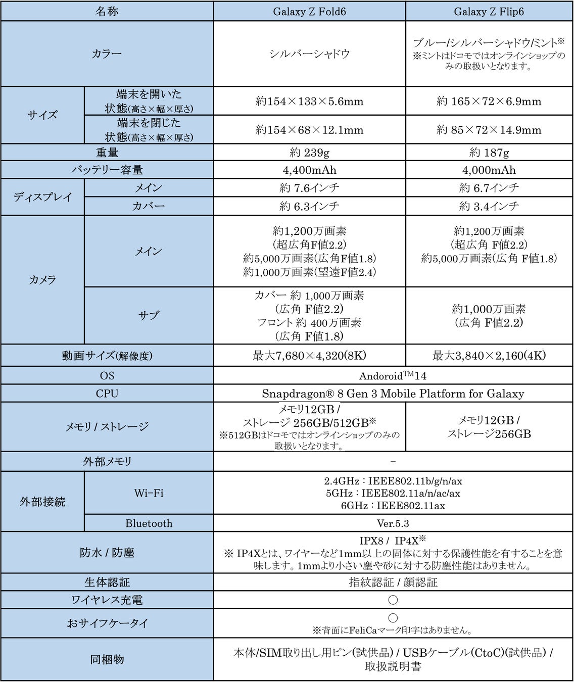 <主な仕様 : 「Galaxy Z Fold6」「Galaxy Z Flip6」>