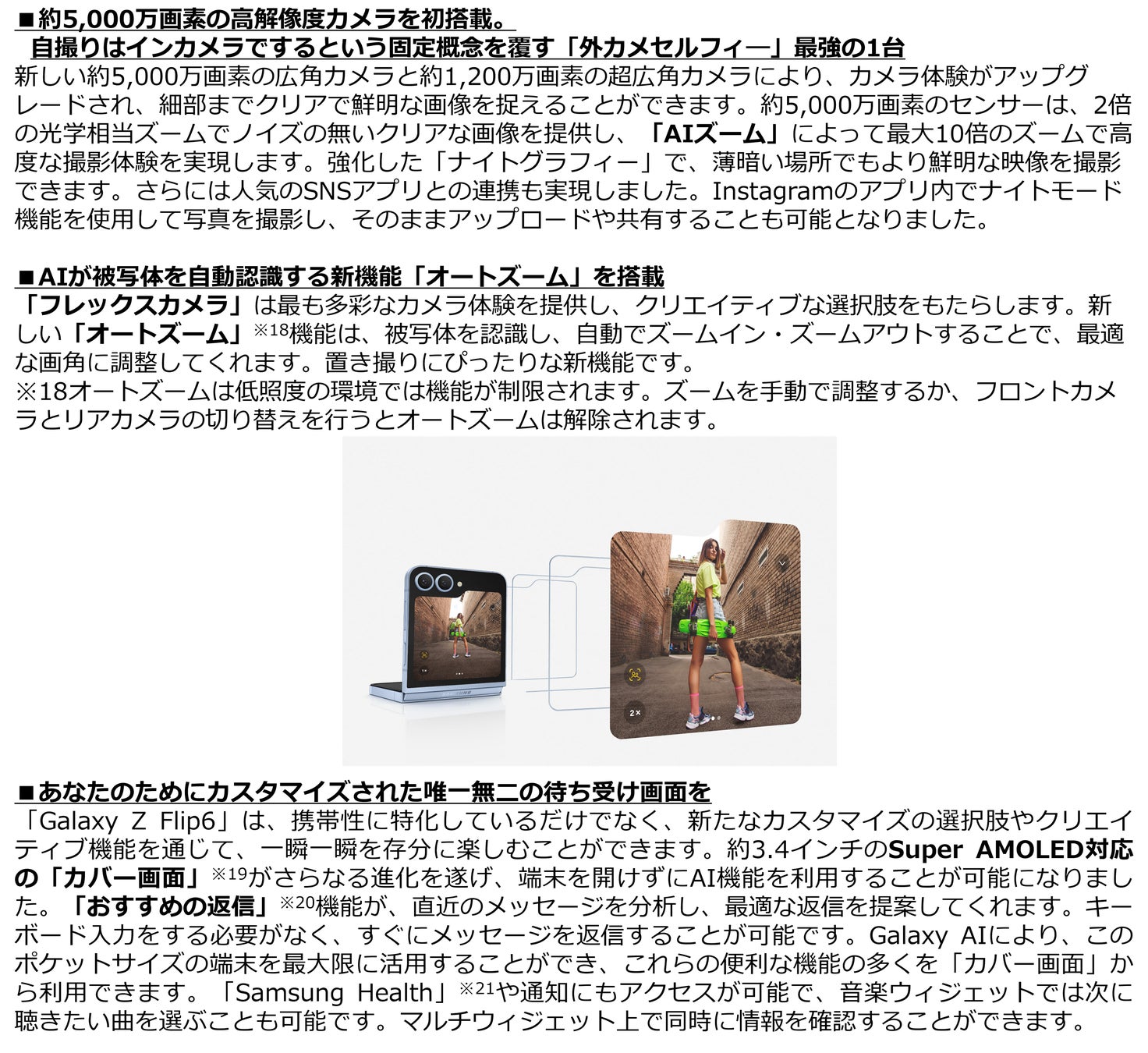 「Galaxy Z Fold6|Z Flip6」の共通特長は下記のとおりです。