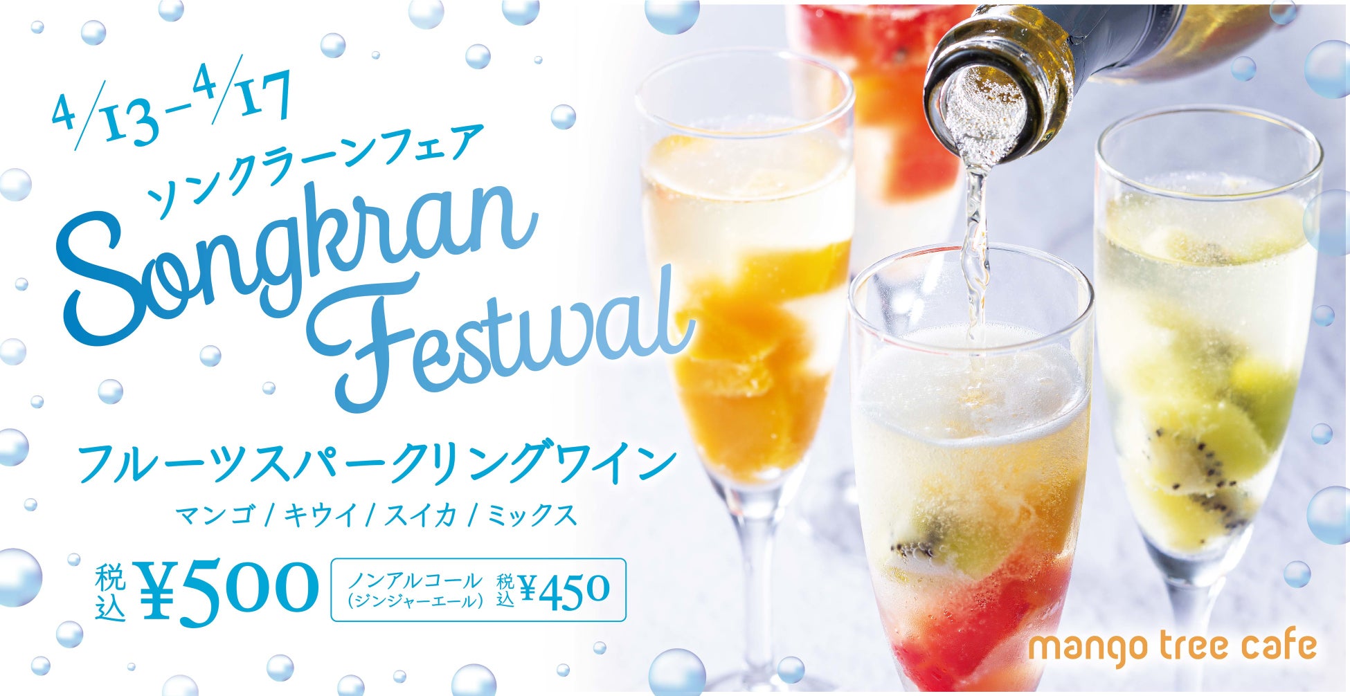 【タイの旧正月をお祝いして乾杯!】 マンゴツリーカフェ「ソンクラーンフェア」開催、「フルーツスパークリング」を500円で販売