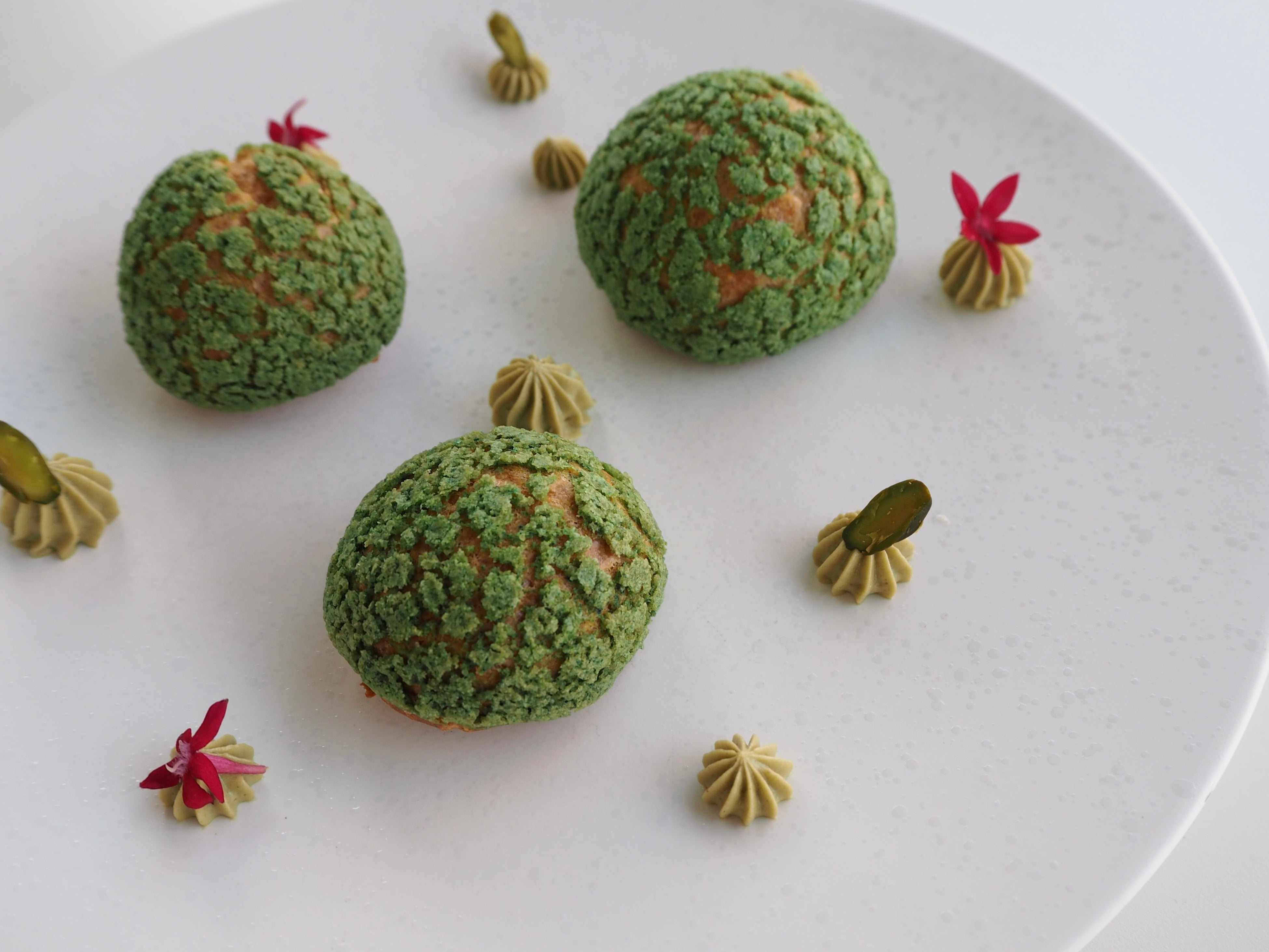 ピスタチオの豊かな香りを閉じ込めたクリームを、たっぷりと詰め込みました。