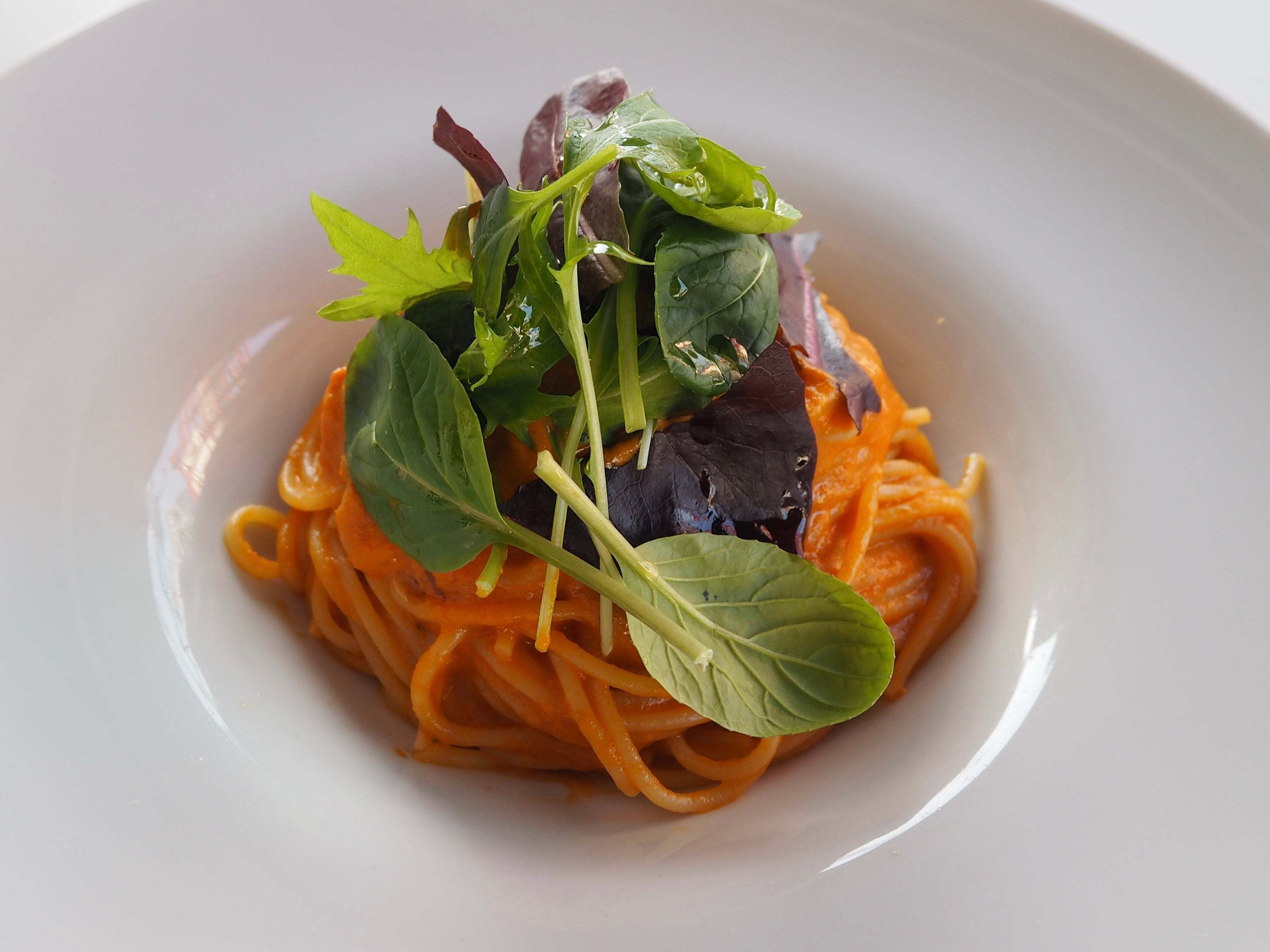 蟹味噌・カニ身・カニの旨味が凝縮された汁を贅沢に使い、濃厚でクリーミーなソースに仕上げた一皿。