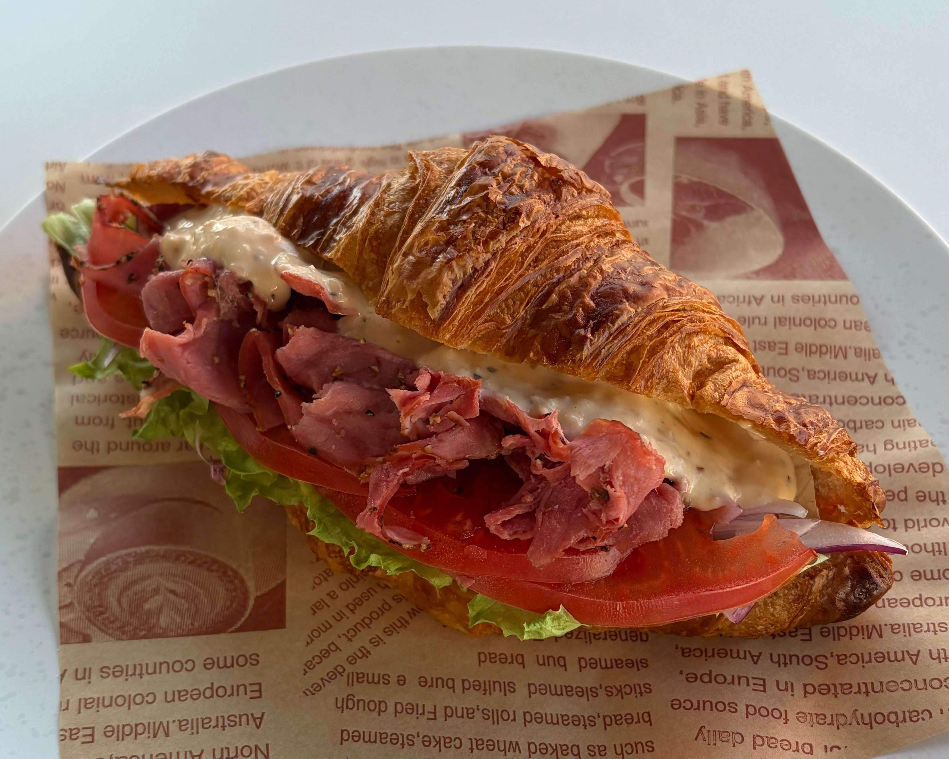 旨味たっぷりのビーフパストラミに、自家製のオニオンソースマヨを合わせた贅沢サンド