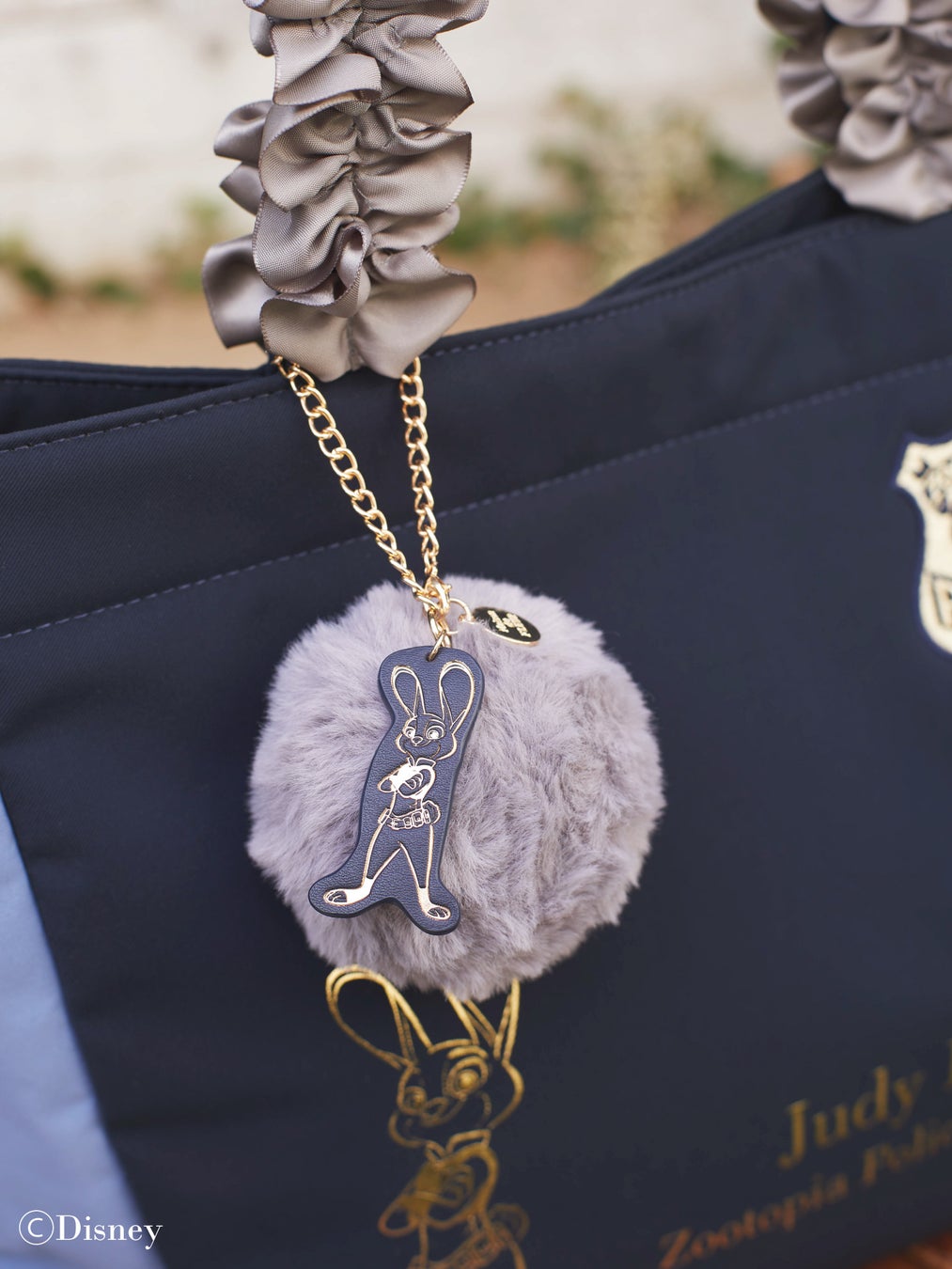 警察官のジュディの制服からインスピレーションを受けたフリルトートバッグは、ネイビーとブルーの切り替えデザインに。持ち手のフリルにはジュディをイメージしたグレーを組み合わせました。ゴールドの刺繍で施したZOOTOPIA POLICEのバッジモチーフもポイントです。