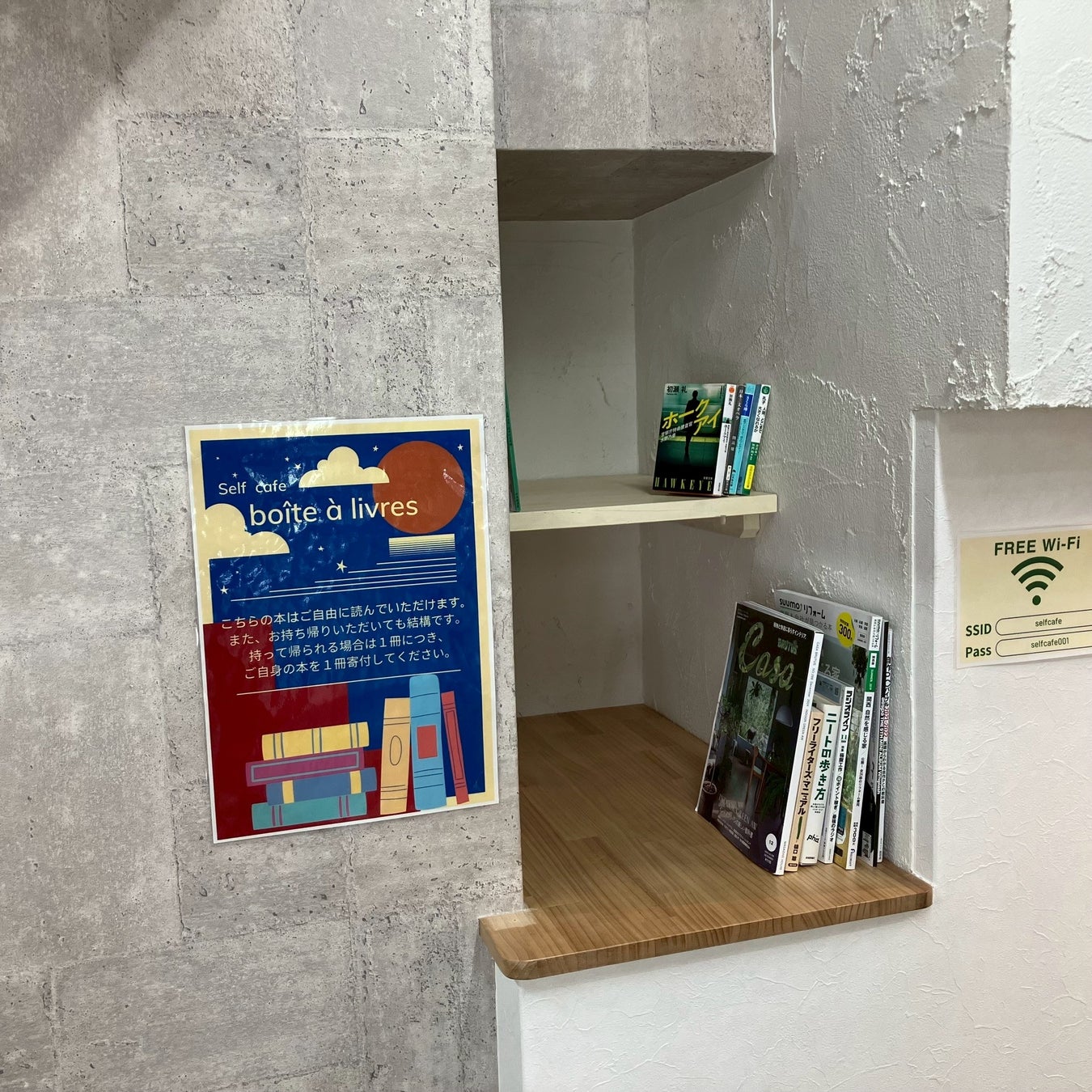 セルフカフェは、スタッフのいない無人のカフェなので、腰を据えて読書して頂いたり、勉強やお仕事の途中でお店の店員さんの目が気になり集中が切れたりなんていうこともなく、気の済むまでご利用いただけます。