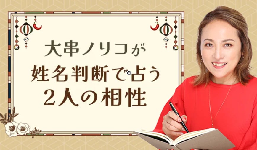 【姓名判断】大串ノリコが名前の画数で占う、2人の全相性。公式占いサイトにて、「大串ノリコが姓名判断で占う2人の相性」を一般向けに公開中