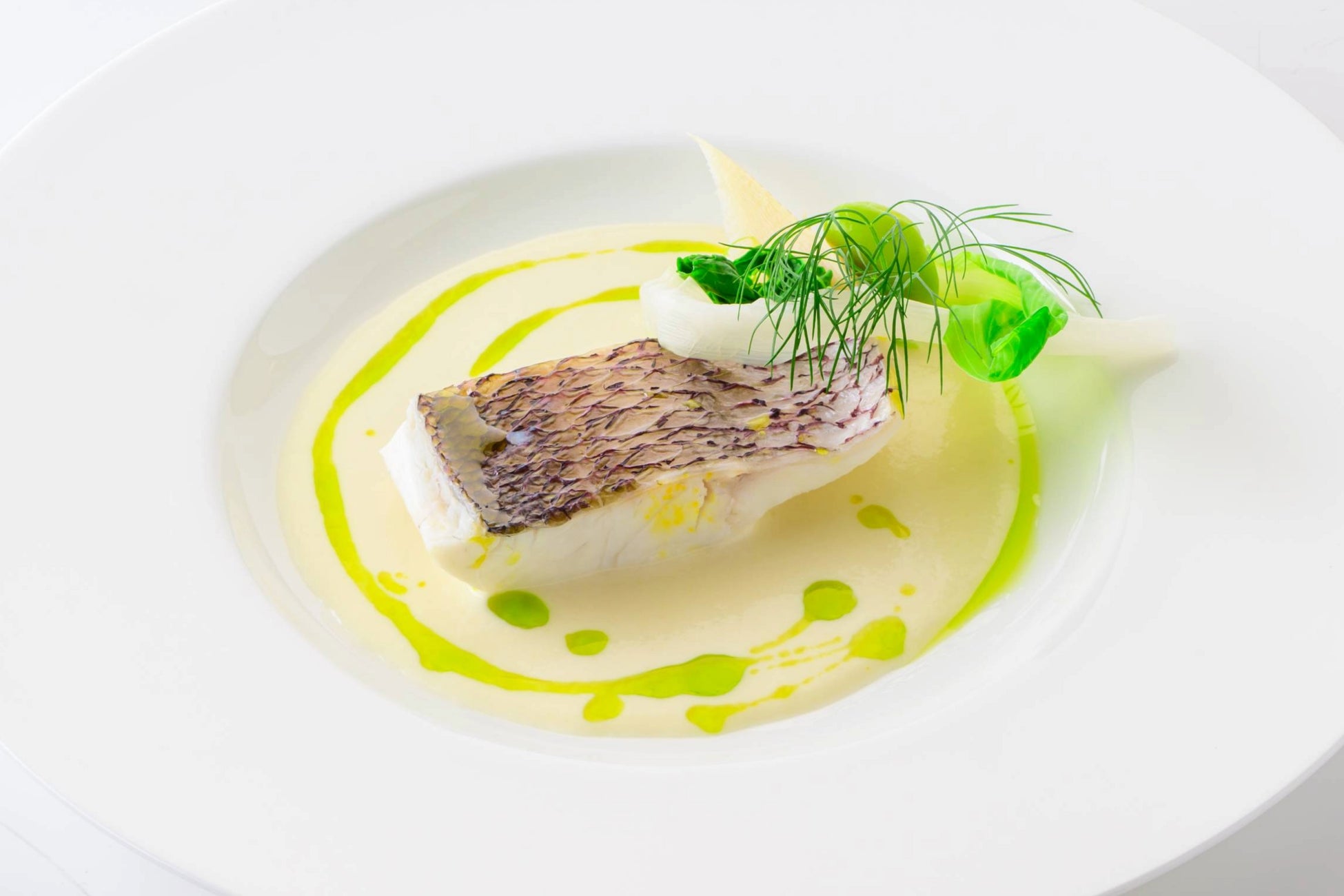上品な脂が乗った”春の魚”桜鯛を白ワインで蒸し、ふっくらと仕上げました。北海道産玉ねぎをじっくりと煮込むことで、甘みが凝縮されたソースが魚介の旨味と調和します。