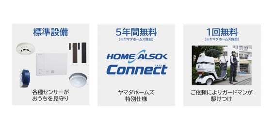株式会社ヤマダホームズ(本社:群馬県高崎市、代表取締役 兼 社長執行役員:清村 浩一、以下、ヤマダホームズ)とALSOK(本社:東京都港区、代表取締役社長:栢木 伊久二)は、ALSOKの最新ホームセキュリティ「HOME ALSOK Connect」を標準搭載した住宅の販売に向けて業務提携契約を締結いたしました。