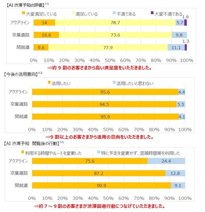 ※1 AI渋滞予知を過去にご利用いただいたことがあるお客さまのうち、対象路線をよく利用されるお客さまからの回答を