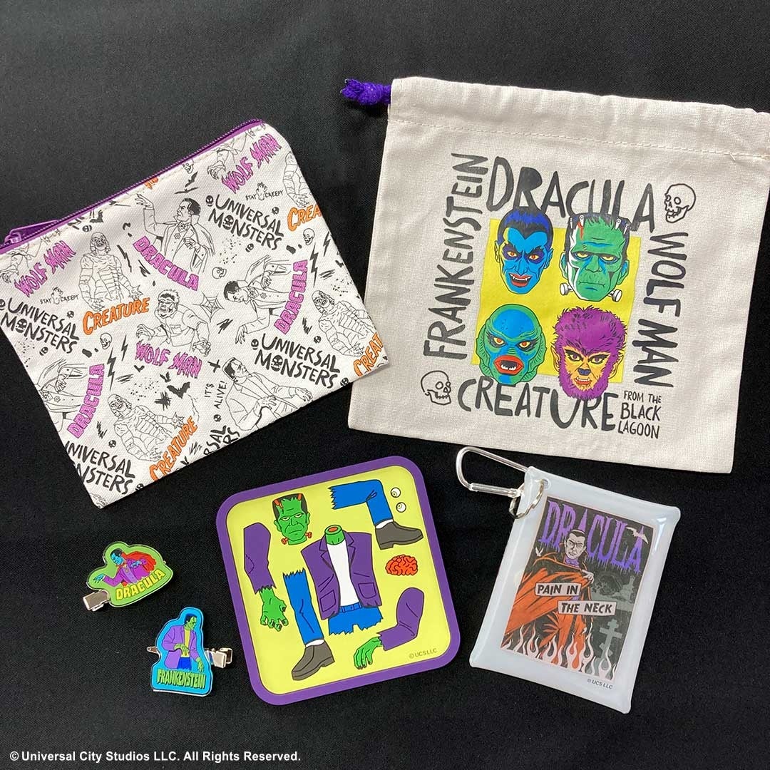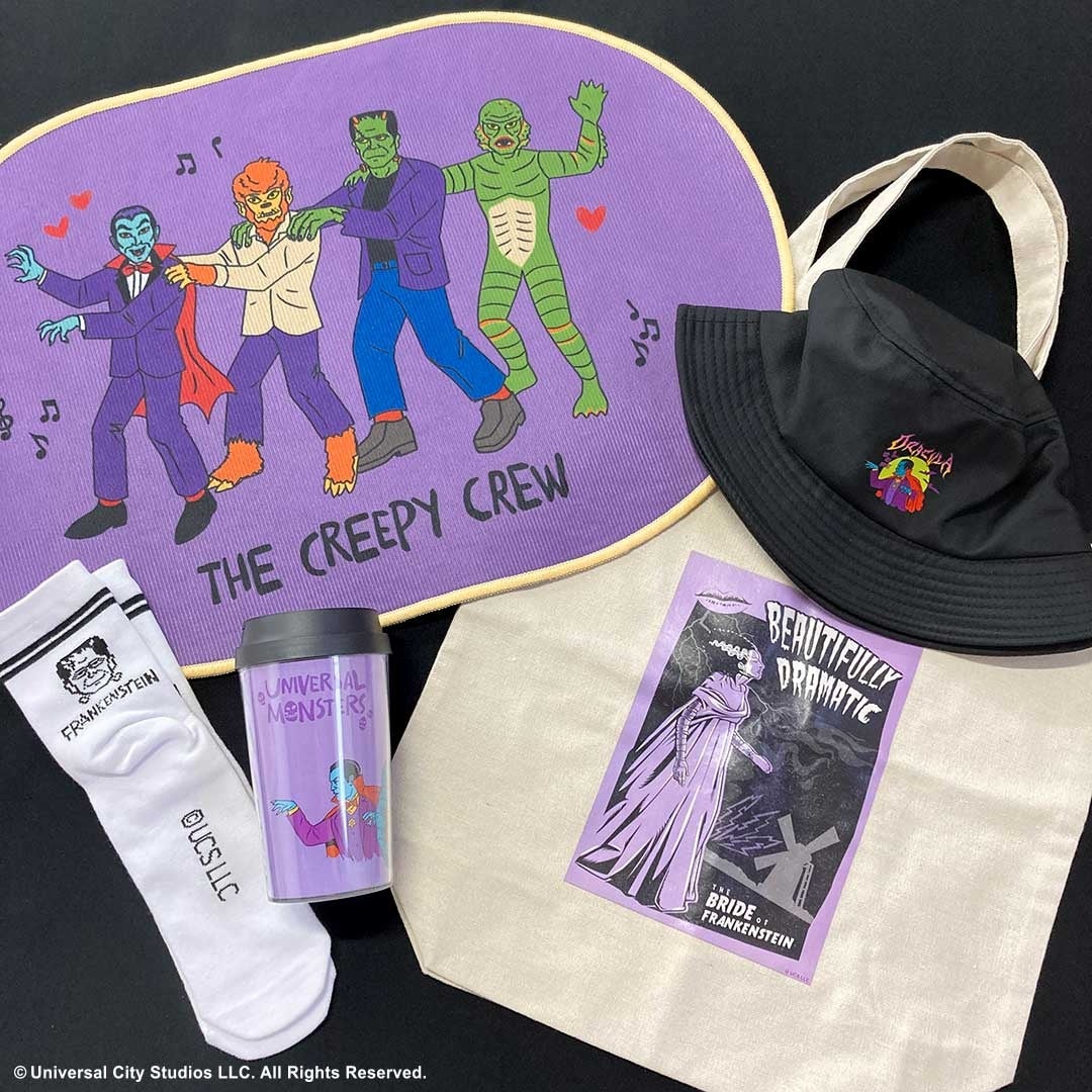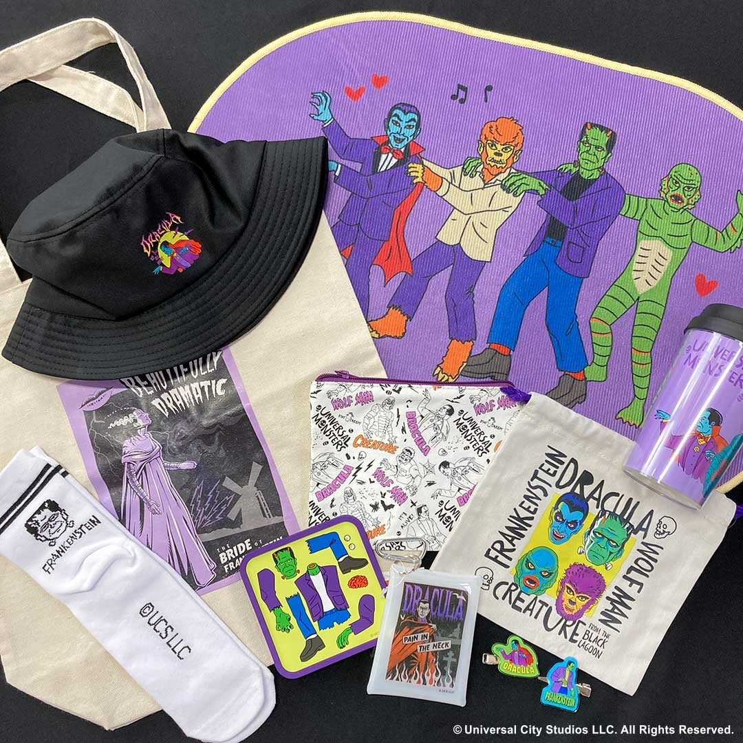 大人気キャラクター「ドラキュラ」「オオカミ男」「フランケンシュタイン」「半魚人」をフィーチャーしたデザインで、お家をハロウィン気分に飾れるアイテムから、ファッションに取り入られるアイテムまで幅広いラインナップです。