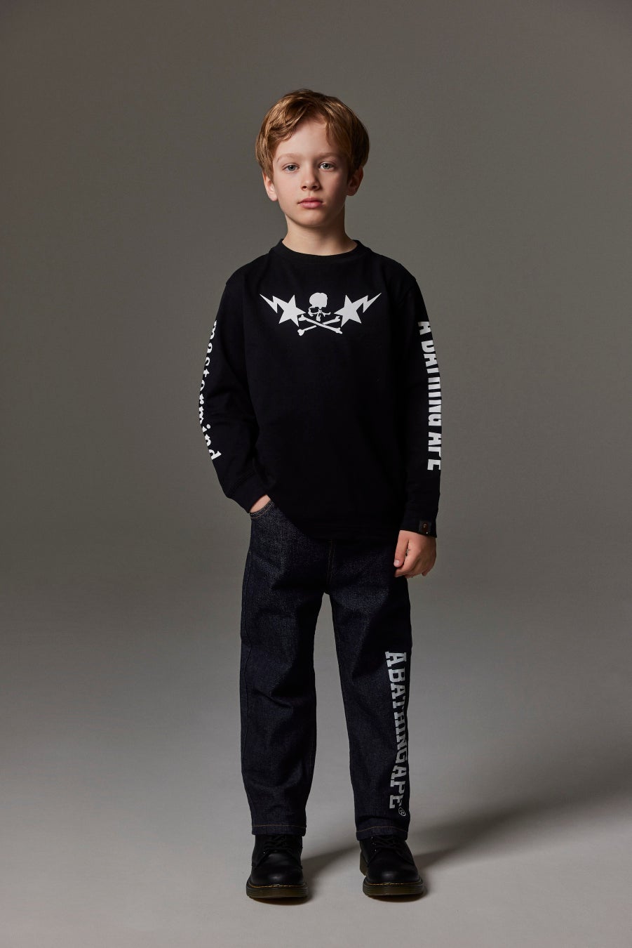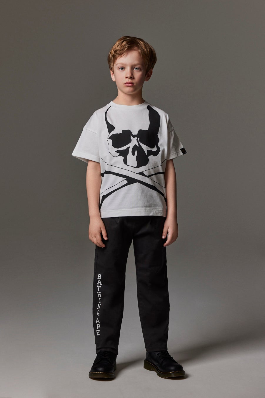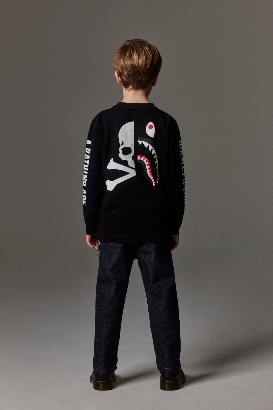 「mastermind JAPAN」のクロスボーンスカルや「BAPE®︎」のAPE HEAD、SHARKといった両ブランドのアイコンを存分に採用し、大人顔負けのアイテムをそろえました。
