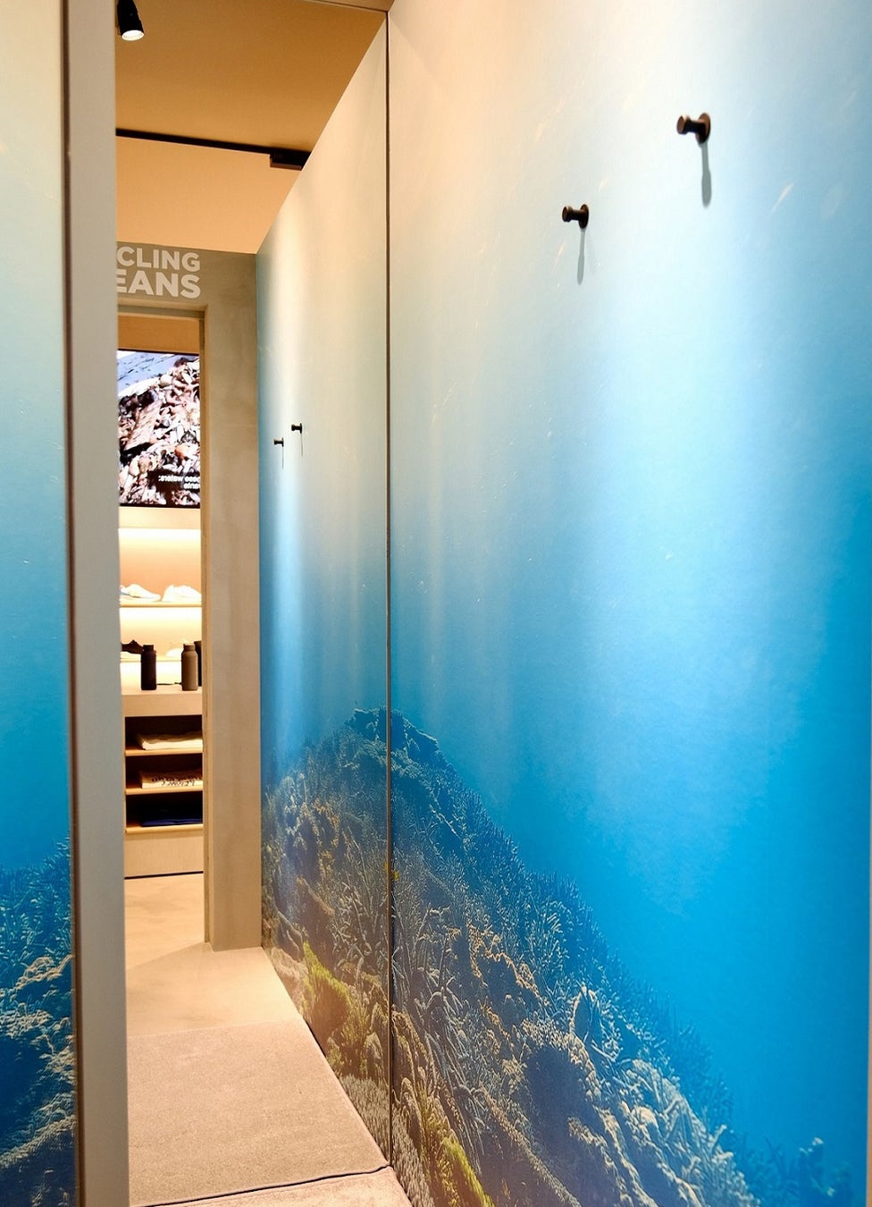 フィッティングルーム内に美しい海を表現。海を守ることを訴求