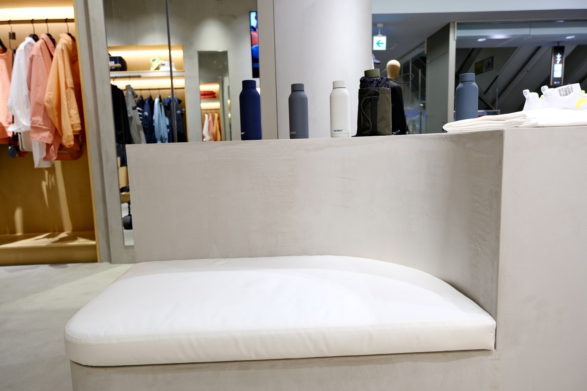 また、「ECOALF」は異業種の企業や行政機関の皆さまと協力することで、環境問題に向き合うための啓発活動や新たな資源活用・循環の創出を模索しており、「ECOALF 新宿髙島屋」では店装においても、異業種の3社のパートナー企業の協力を得ることで、資源活用や環境問題に向き合うことを訴求する店舗をつくりました。