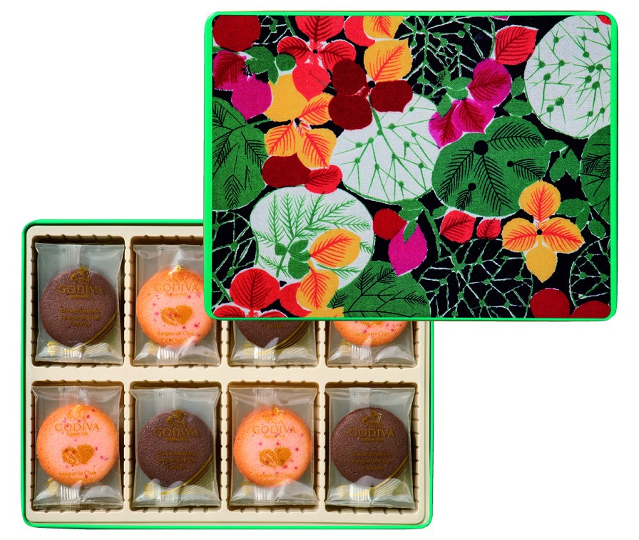 「京都国立近代美術館 限定ギフト <ゴディバ>プリント服地見本[あじさい]ラングドシャクッキーアソートメント (あまおう苺&ホワイトチョコレート14枚 / ダークチョコレート16枚)」