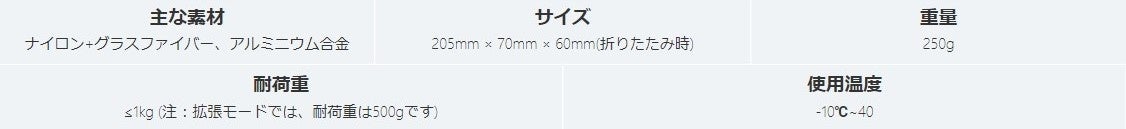 サイズ | 205mm × 70mm × 60mm(折りたたみ時) |