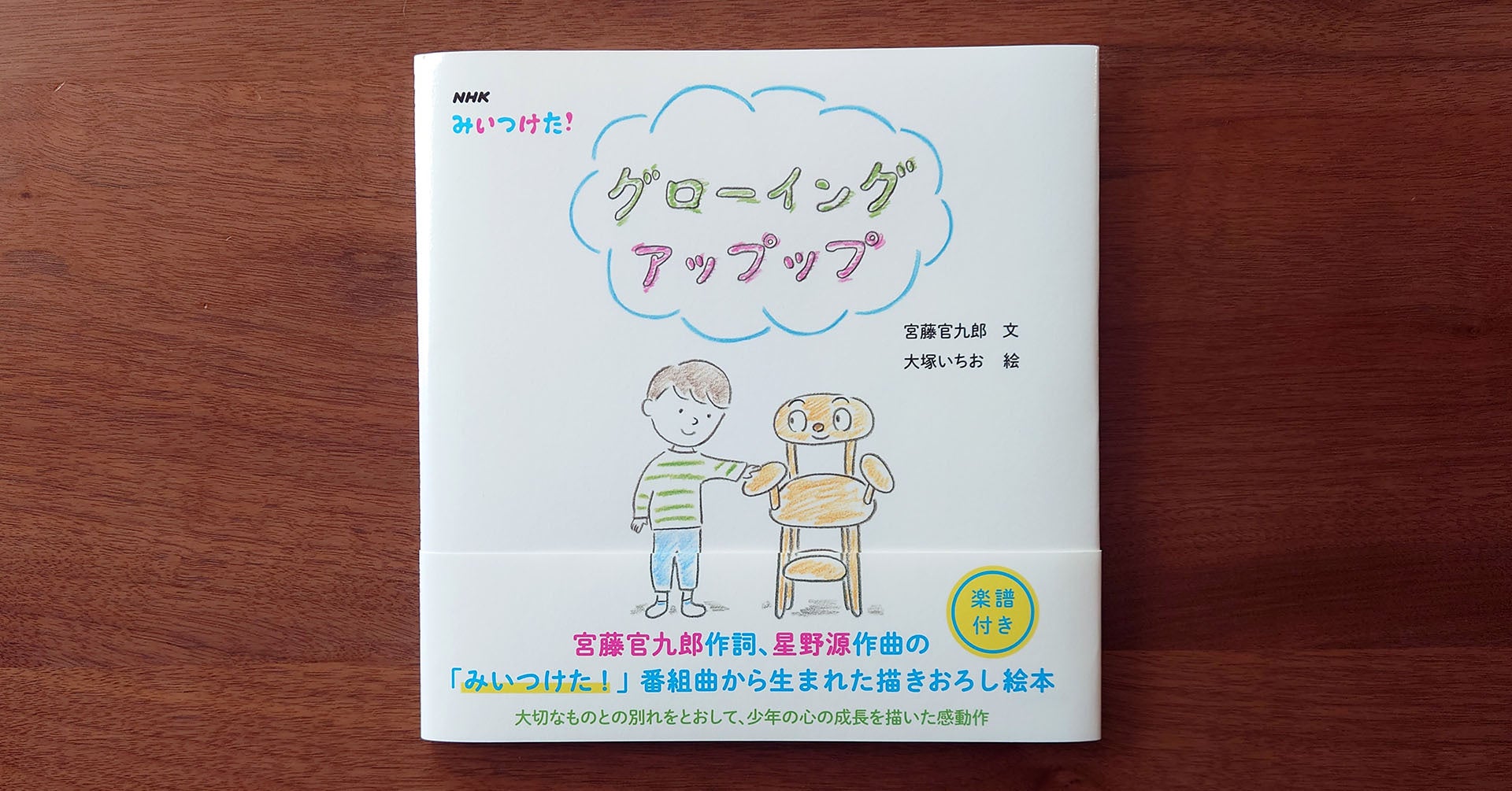 NHK Eテレの「みいつけた!」の番組曲「グローイング アップップ」(作詞:宮藤官九郎・作曲:星野源)から生まれた絵本『NHK みいつけた! グローイング アップップ』が、NHK出版より1月20日発売になります。大切なものとの別れをとおして少年の心の成長を描く、心あたたまる物語を親子揃ってお楽しみください。