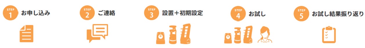 支援内容:対象ロボットの貸出し、利用環境の調査、設定や操作説明等のコンサルティング、お試し後の稼働レポート