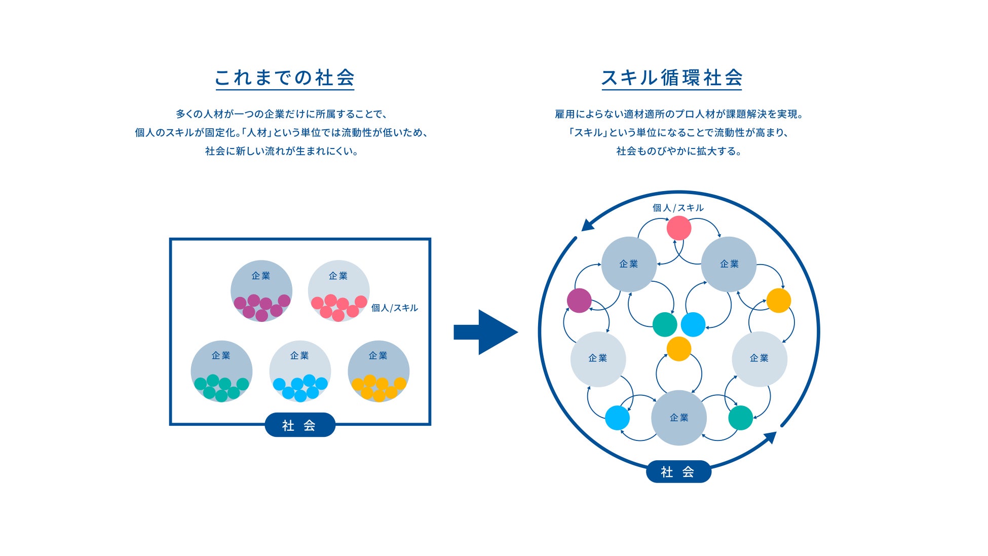 人材流動性の低さが指摘される日本において、流動化を促進させるだけでなく、企業の課題や加速させたい事業に必要なスキルを獲得することが今後重要になります。そのため、雇用によらずスキルを活かす“スキルの循環”が日本企業に広がっていくことで企業の競争力、推進力が向上し、ひいては日本経済が発展すると考えています。