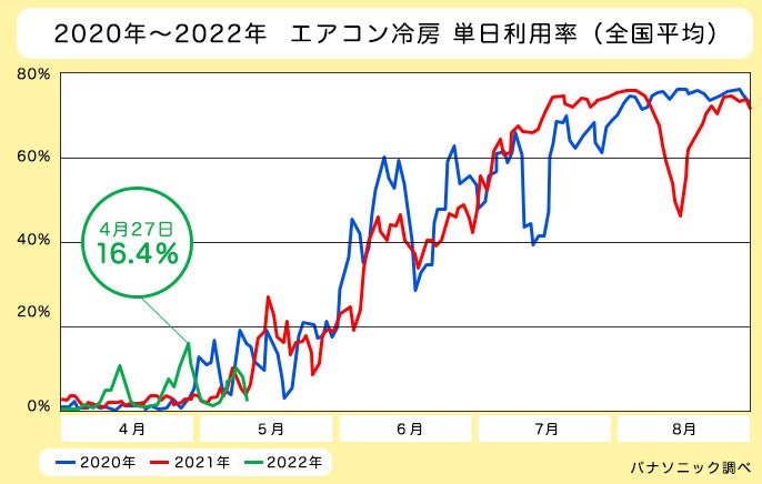 現時点で今年の最高エアコン冷房利用日率は、4月27日の16.4%!
