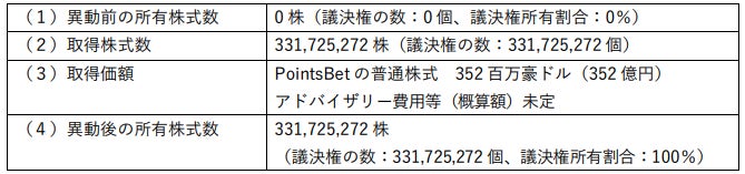 PointsBet Holdings Limitedの株式取得(子会社化)に関するお知らせ