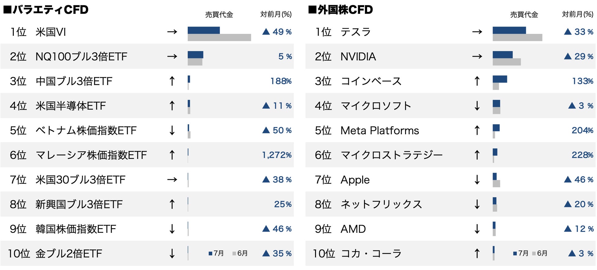 GMOクリック証券:2023年7月CFD売買代金ランキングを発表