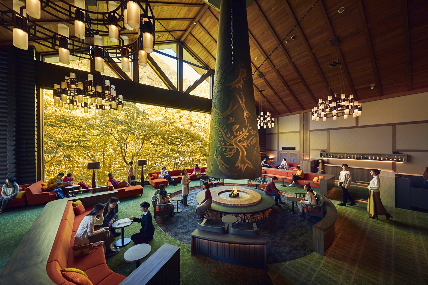 温泉の中でくつろぎながら、景色を存分に味わえるように、特等席を用意しました。特等席では、体を横たえながら、頭上に広がる紅葉をパノラマで楽しむことができます。寝転がりながら紅葉の景色を独り占めするのもよし、全身を安らげながらじっくり温泉を楽しむもよし。特等席で心と体をゆっくりと癒す、至福のひとときを過ごせます。