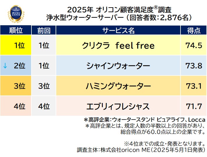 2025年 オリコン顧客満足度®調査 浄水型ウォーターサーバー