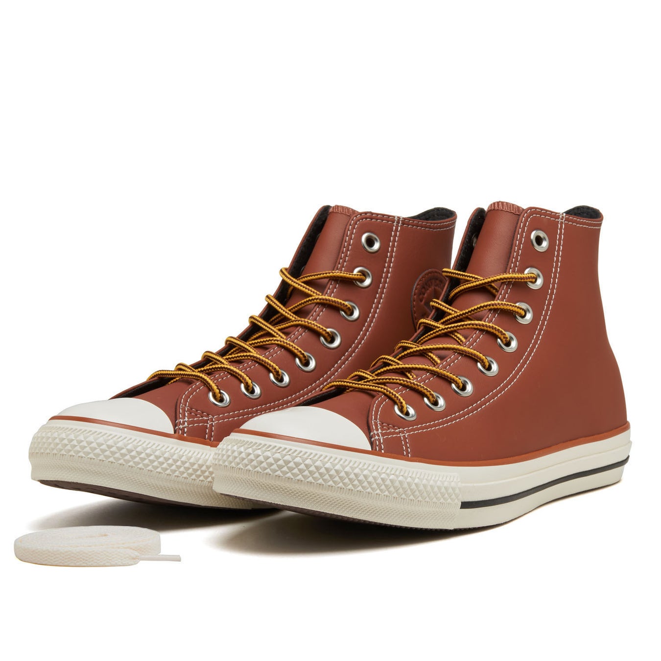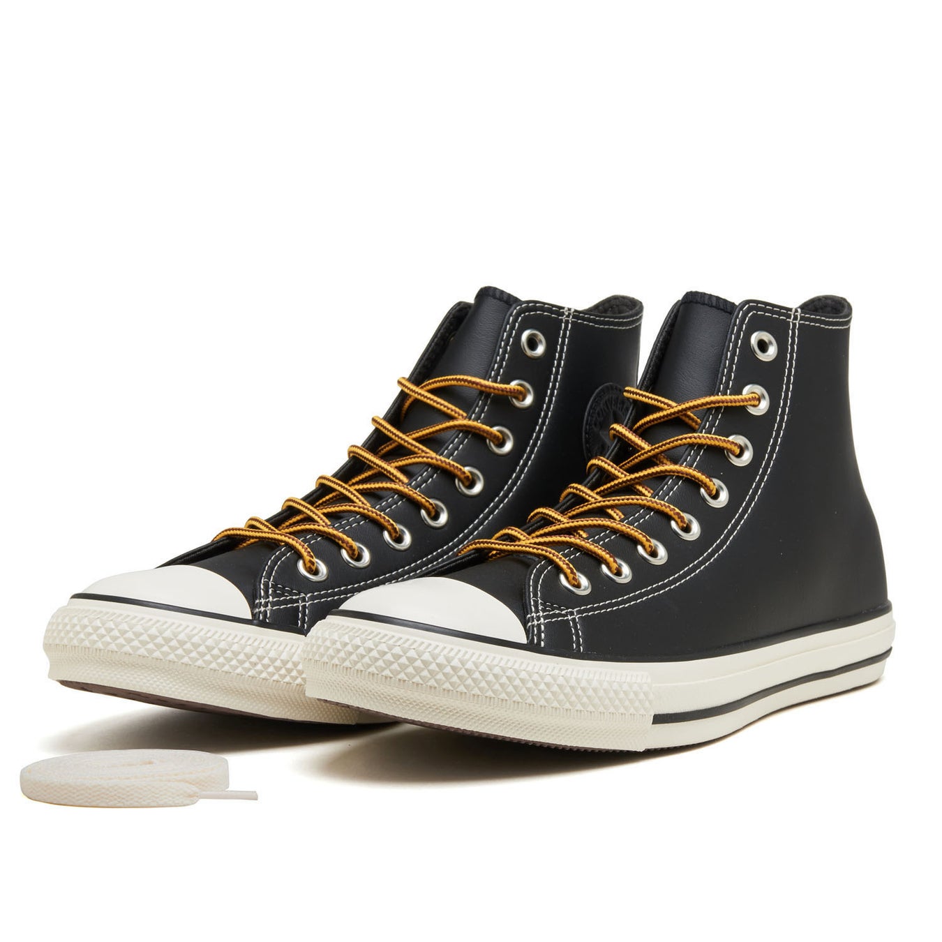 本モデルは、ワークブーツをモチーフにしたブーツライクな佇まいと、秋冬のトレンドであるレザーライクなシンセティック素材を採用した一足。アッパーには上品な艶を放つ素材を用い、サイドにはエンボス調のCONVERSE アンクルパッチを配しています。さらに、ブーツテイストのトラ紐とホワイトシューレースの2種を付属。スタイリングやシーンに合わせて表情を変えられる、汎用性の高い仕上がりとなっています。