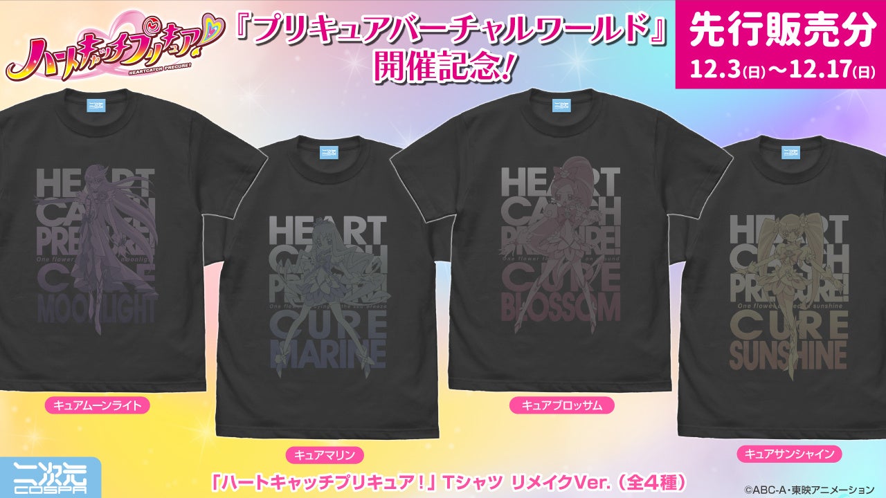 これらのTシャツ(リメイクVer.)は〈プリキュアバーチャルワールド〉で先行受注を行い、12月21日(木)より一般販売分の予約も実施予定です。