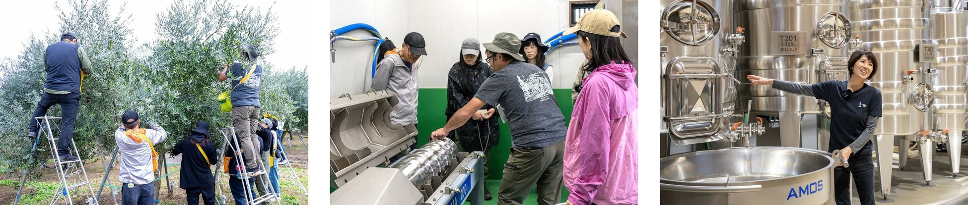 10月26日(土)開催のオリーブ収穫体験では、笛吹市のオリーブオイルメーカー「笛吹オリーブオイル前田屋」の畑で、オリーブの収穫と国内では見る機会の少ないオリーブオイルの製造工程も見学。その後は富士五湖エリアで唯一のワイナリー「セブンシダーズワイナリー」を訪れ、醸造家から直接畑や工場内の説明を受けました。