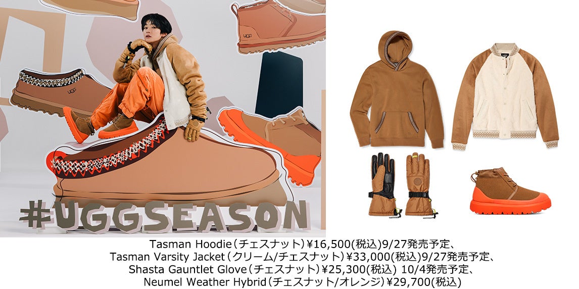 TOKYO(2023年9月22日)– 南カリフォルニアを拠点とするグローバルライフスタイルブランドのUGG (a division of Deckers Brands [NYSE: DECK])は、秋分の日である9月23日(土)を皮切りに、UGGの本格シーズン到来をセレブレートする「#UGGシーズン」キャンペーンを開始します。日本では、「仮面ライダーゼロワン」で主演デビューして以来、数々のドラマやCM、映画など活躍の場を広げる俳優高橋文哉さんをキャンペーンクリエイティブに起用。UGGのアイコニックなチェスナットカラーのクラシックブーツやスリッポンなどにインスピレーションを得たクリエイティブで、これからのシーズンに欠かせない暖かなふわもこの新作スニーカーからアパレルまで、UGGならではの着こなしを魅せています。