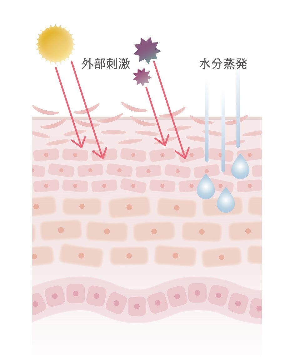 バリア機能が乱れているため、肌のうるおいが蒸発してしまい、外部刺激の影響も受けやすい。