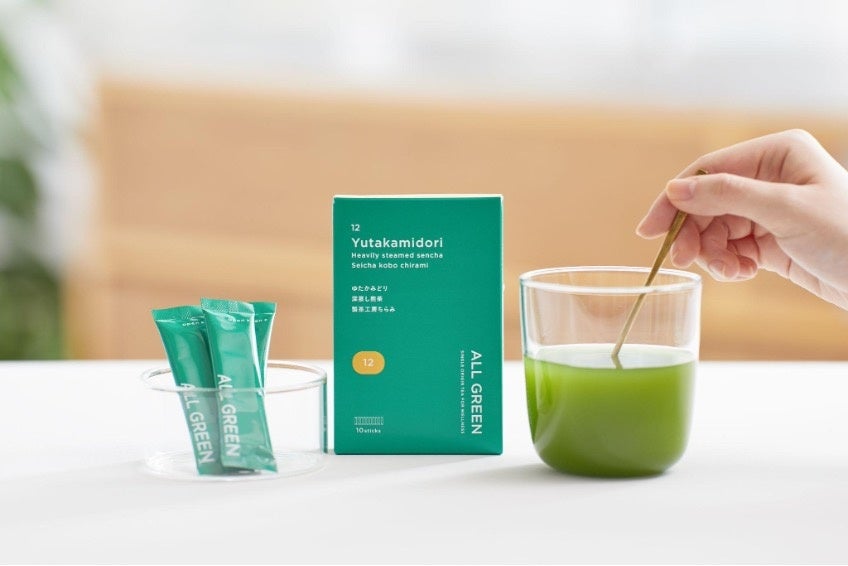 「ALL GREEN」は、希少なシングルオリジン・ティーを丸ごと粉砕し、おいしさや栄養を損なわない独自技術で溶けやすい粉末にした、丸ごと飲む緑茶です。