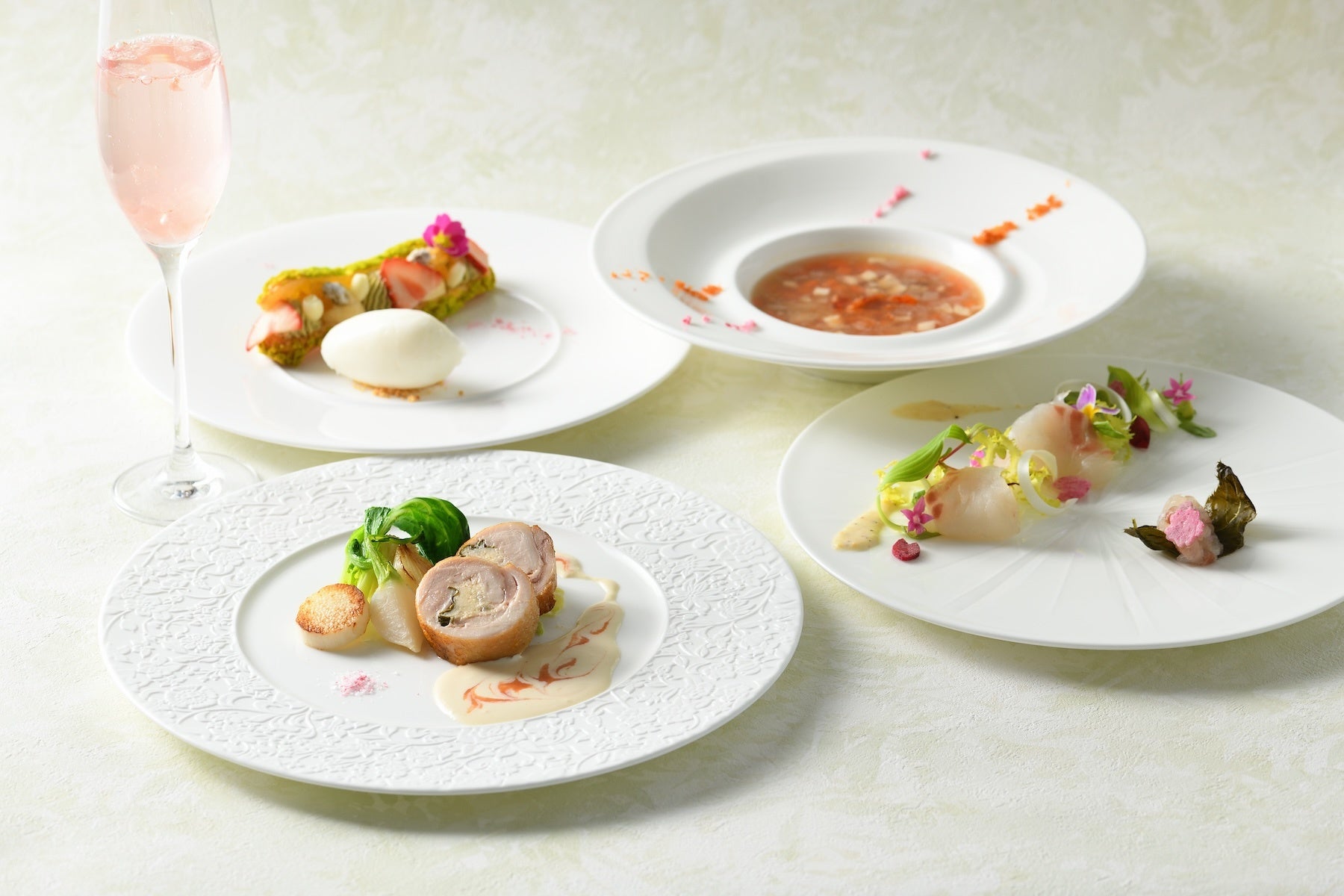 この度、VMG CAFE 九段会館テラスでは、皇居のお堀に咲き乱れる桜を眺めながら、春の味覚を愉しむ「桜尽くしのフレンチコース」をご提供いたします。