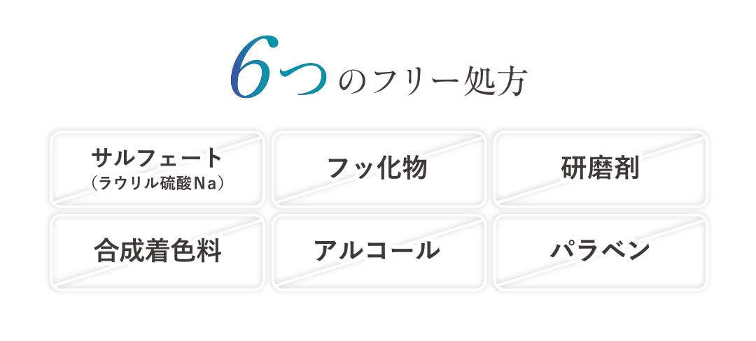 サルフェート(ラウリル硫酸Na)/ フッ化物 / 研磨剤 / 合成着色料 / アルコール / パラベン を使用しない処方を実現。