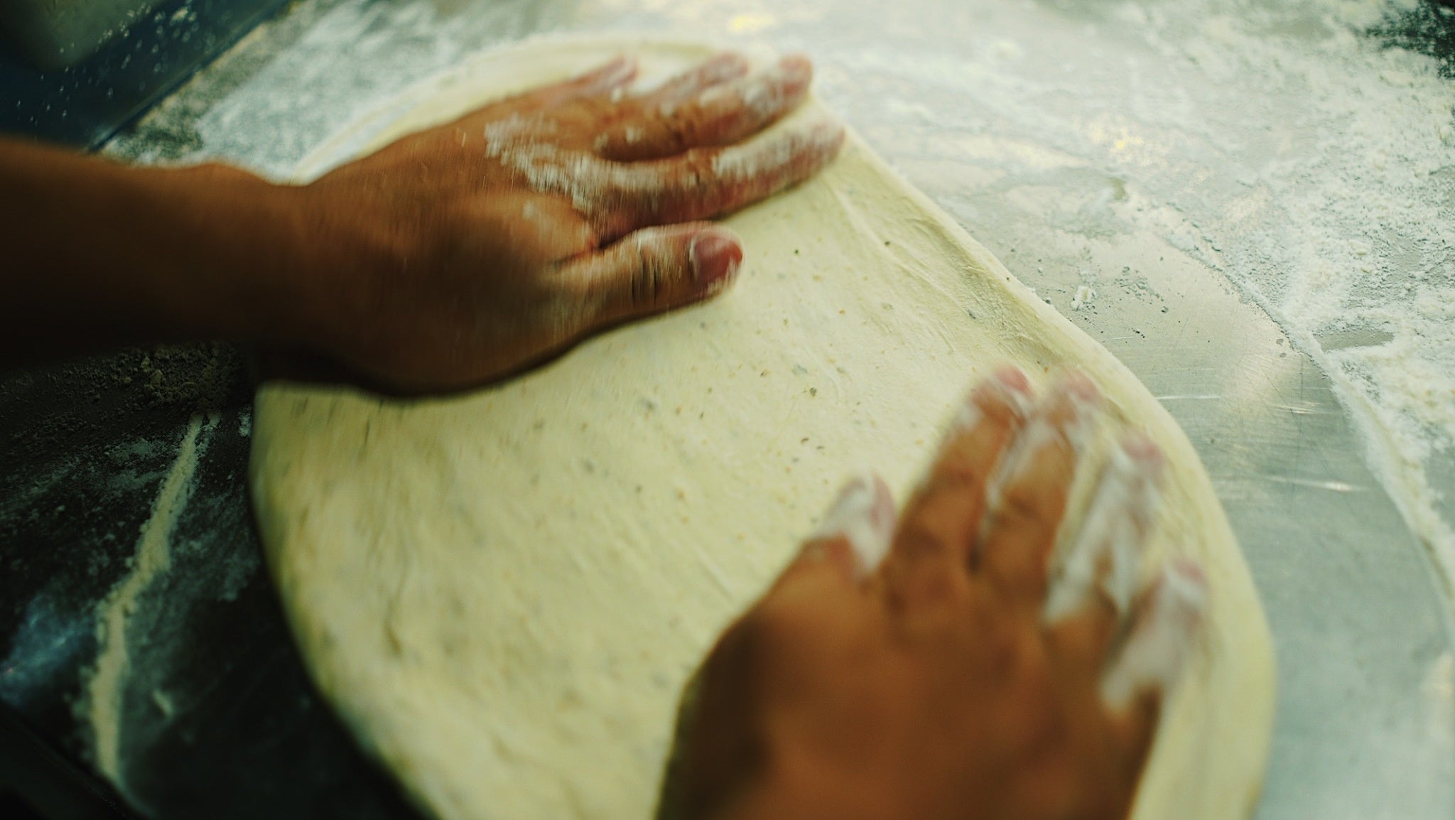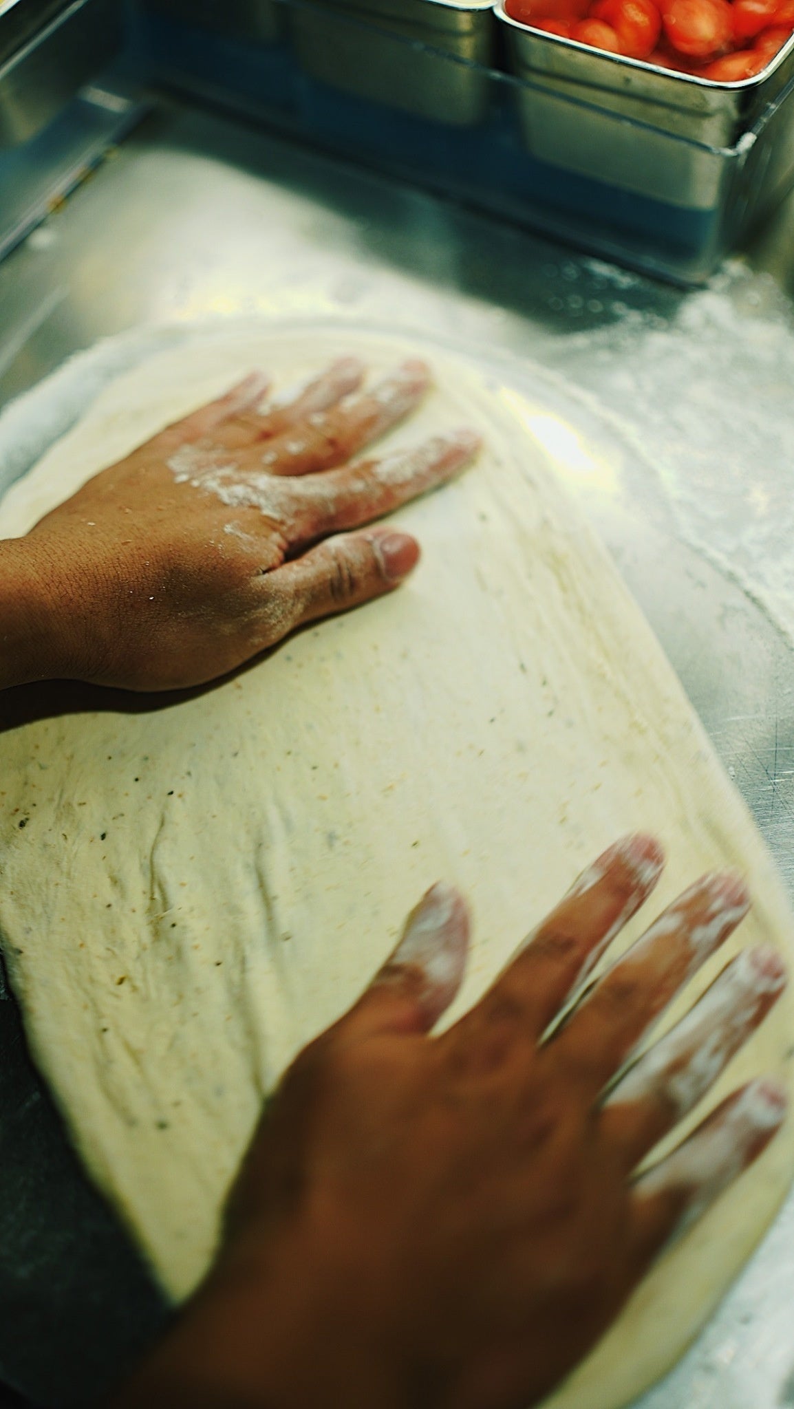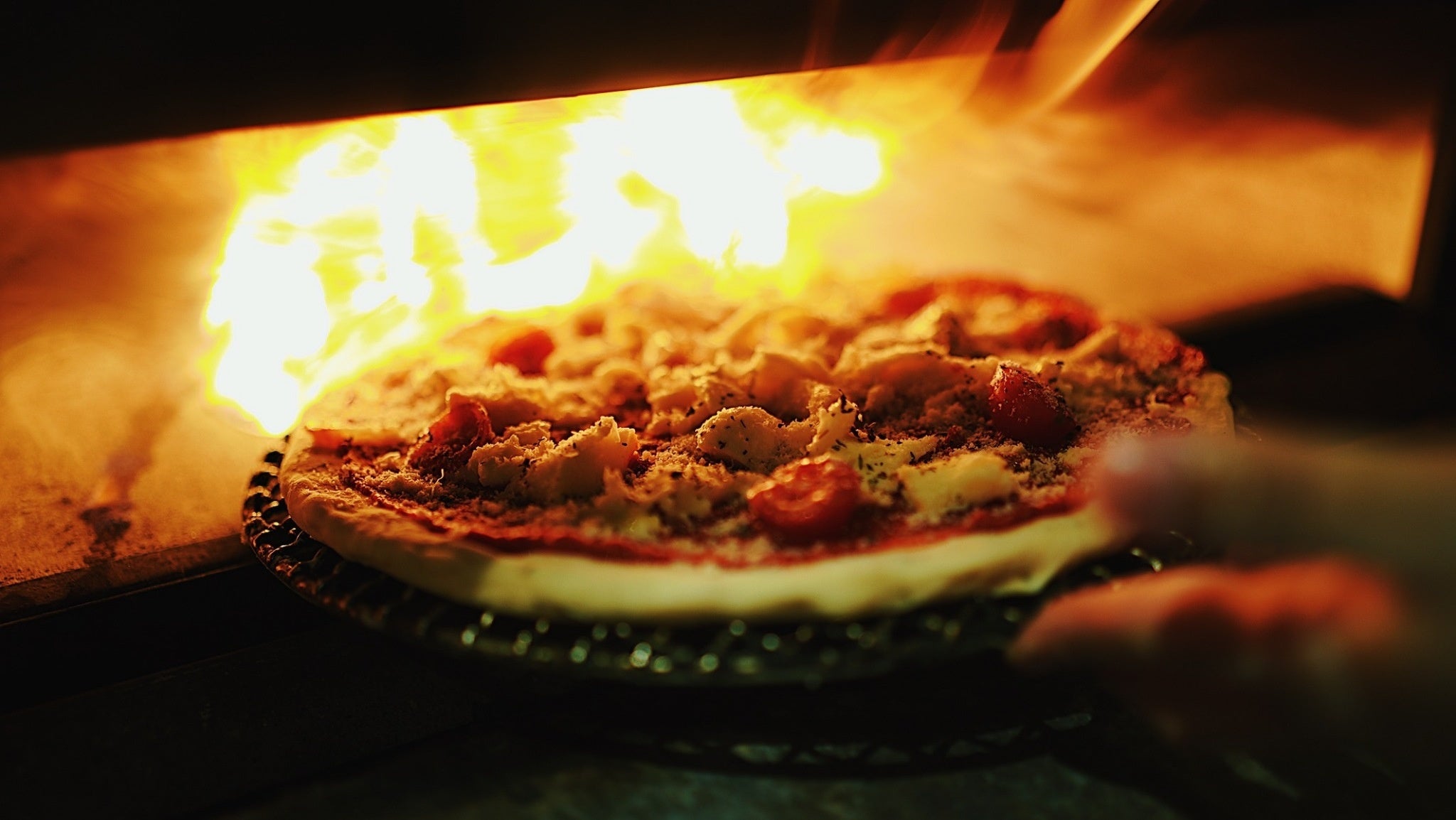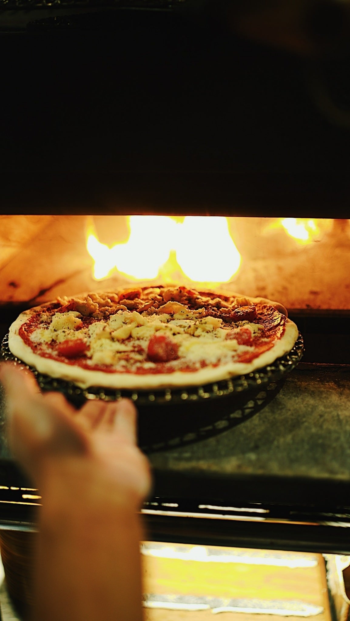 職人が手ごねで仕上げる自家製生地のピザ。高温で一気に焼き上げる直径30cmの大判サイズ。その日使う分だけを毎朝店内でピザ職人が生地から仕上げるからとにかく美味しい。