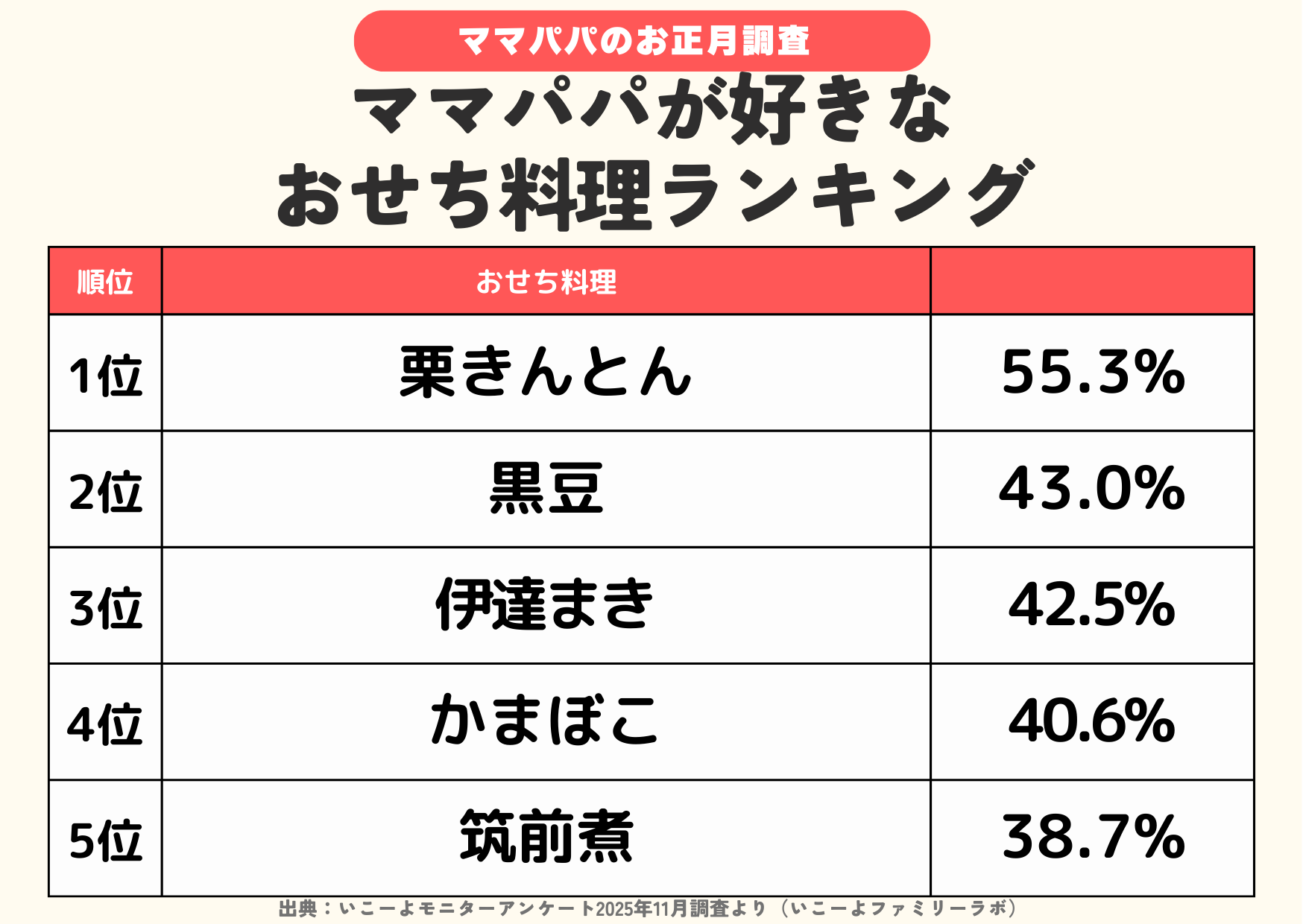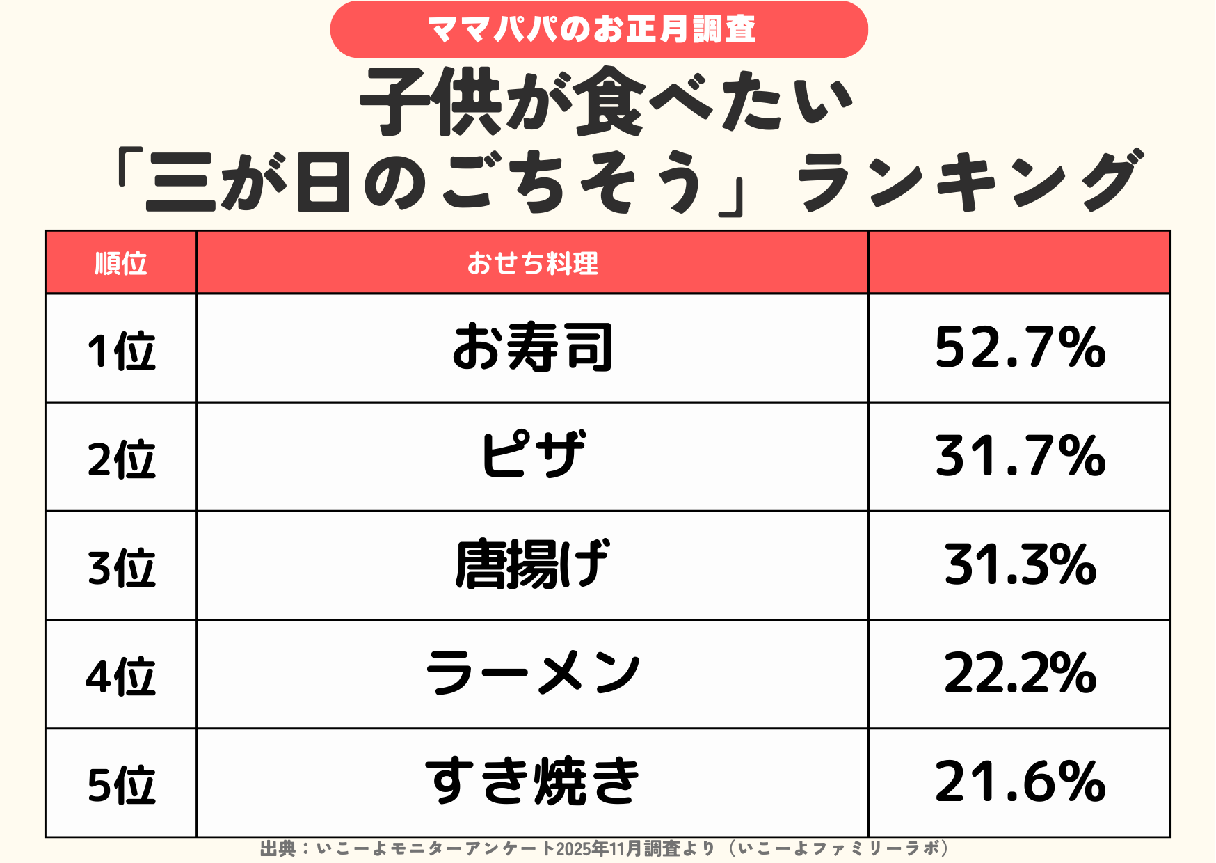▶【2026年お正月】おせち&ごちそうランキング ママパパ&子供のリアル本音を徹底調査(https://iko-yo.net/articles/20714)