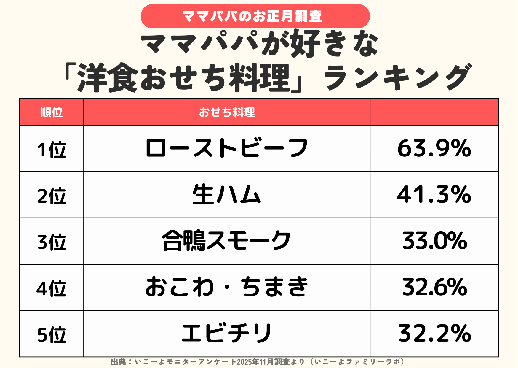 ▶ママパパが好きな「洋風おせち料理」1位は「ローストビーフ」