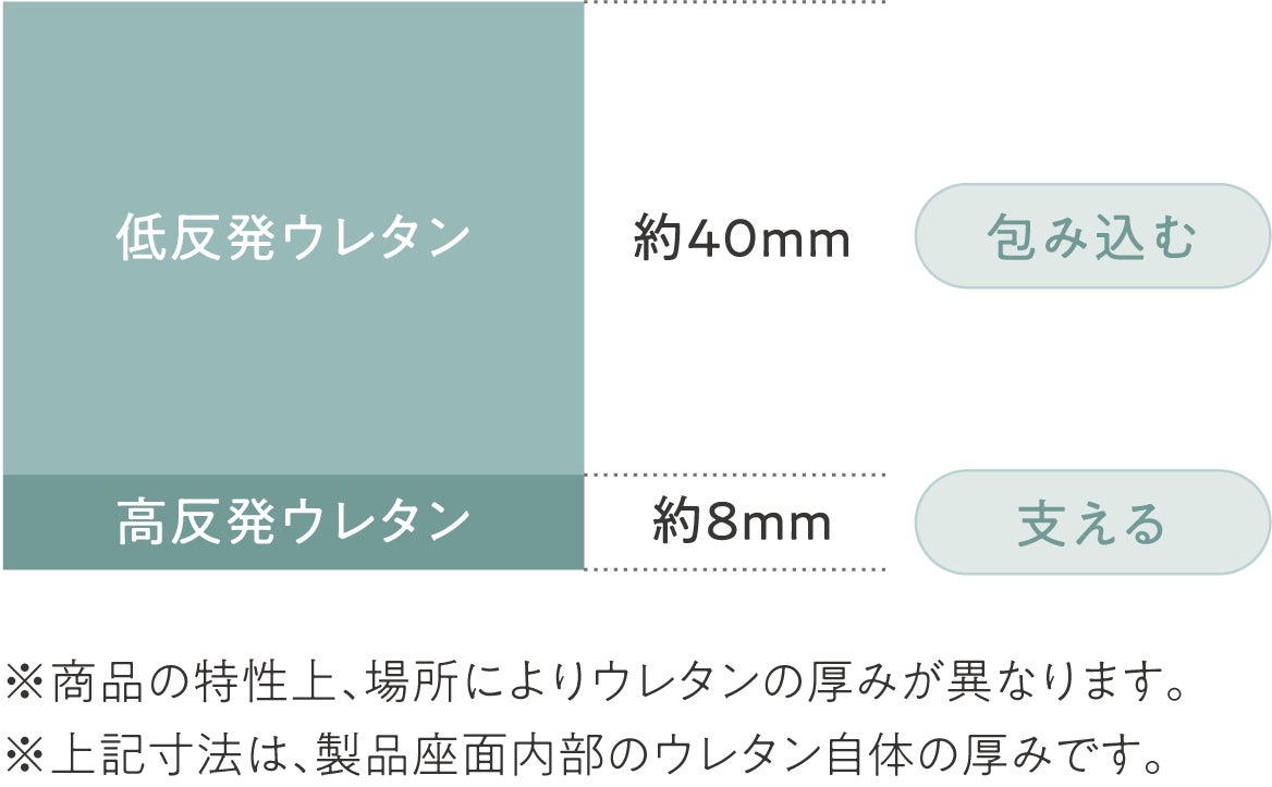 ■ 2つのウレタンがかなえる、上質な座り心地