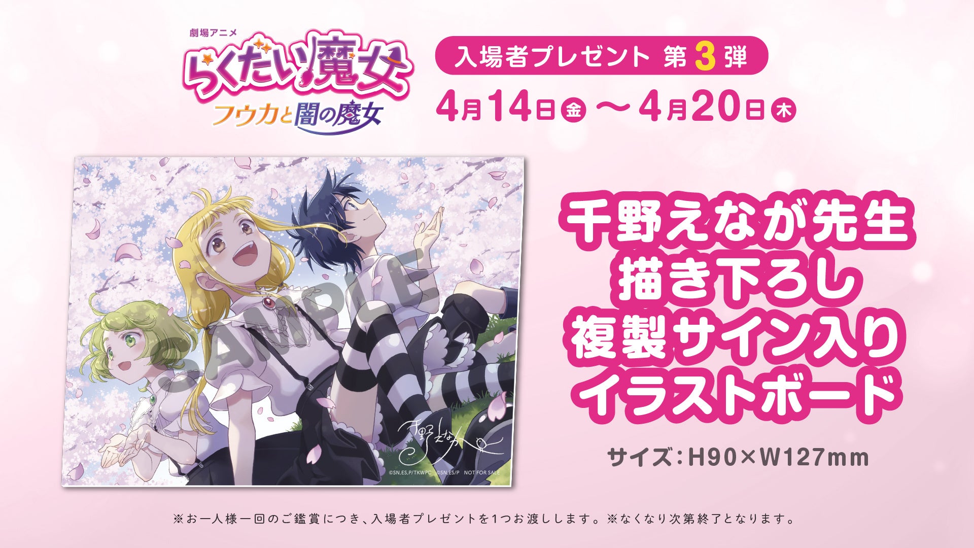 絶賛公開中★劇場アニメ「らくだい魔女 フウカと闇の魔女」入場者プレゼント第3弾は「千野えなが先生描き下ろし複製サイン入りイラストボード」に決定‼