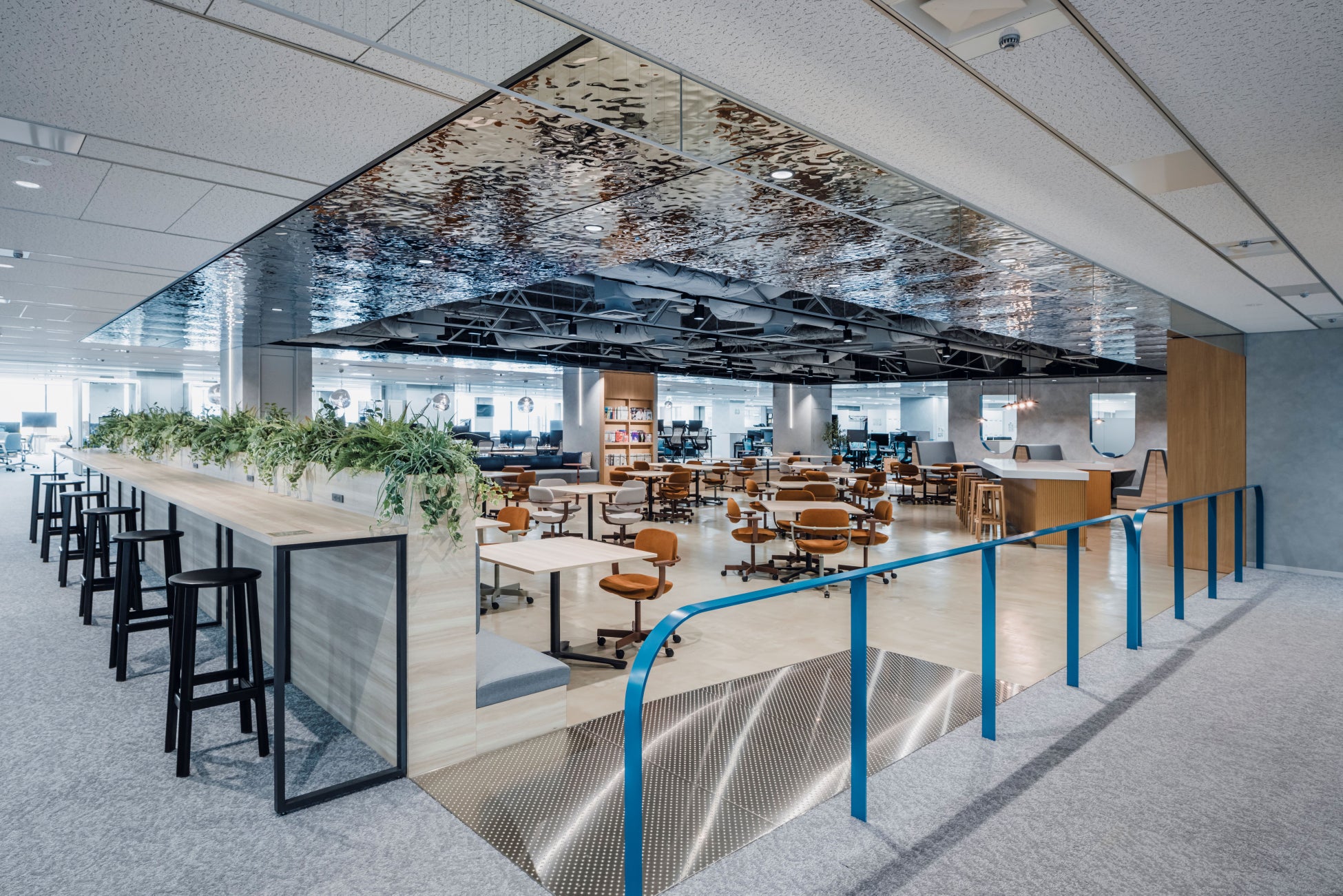 「Bay Tech Makuhari」プラントエンジニアリング事業を展開する東洋エンジニアリング本社オフィス。TOYOが事業を拡げ新たな時代を切り開くため、コンセプト「BLUE PLANeT」のもとインナーブランディングを強化し、多様化する社員が一体となって集まれる場所を設計しました。共創を加速させ新たなTOYOを形にします。