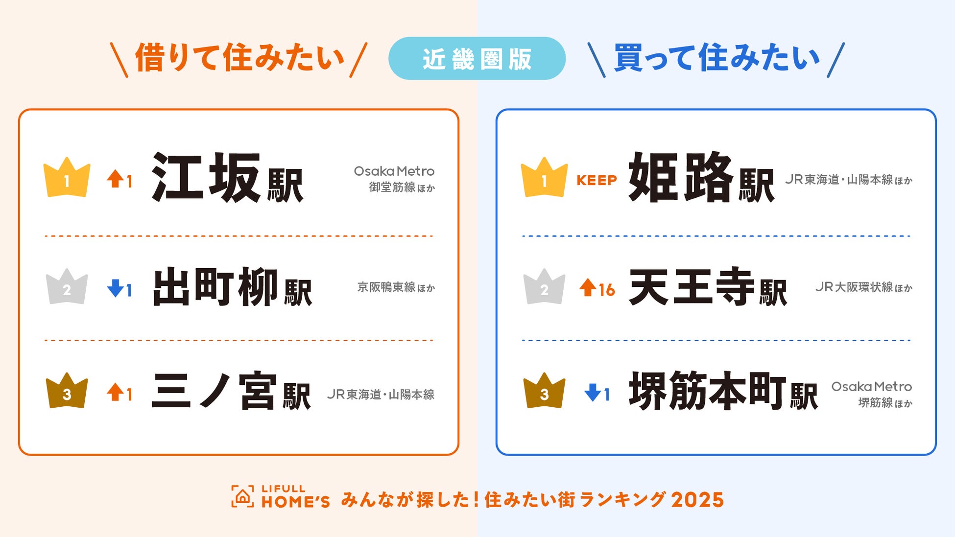 株式会社LIFULL(本社:東京都千代田区、代表取締役社長伊東祐司、東証プライム:2120)が運営する不動産・住宅情報サービス「LIFULL HOME'S(ライフルホームズ)」は、「2025年 LIFULL HOME'S みんなが探した!住みたい街ランキング(近畿圏版)」を発表しました。