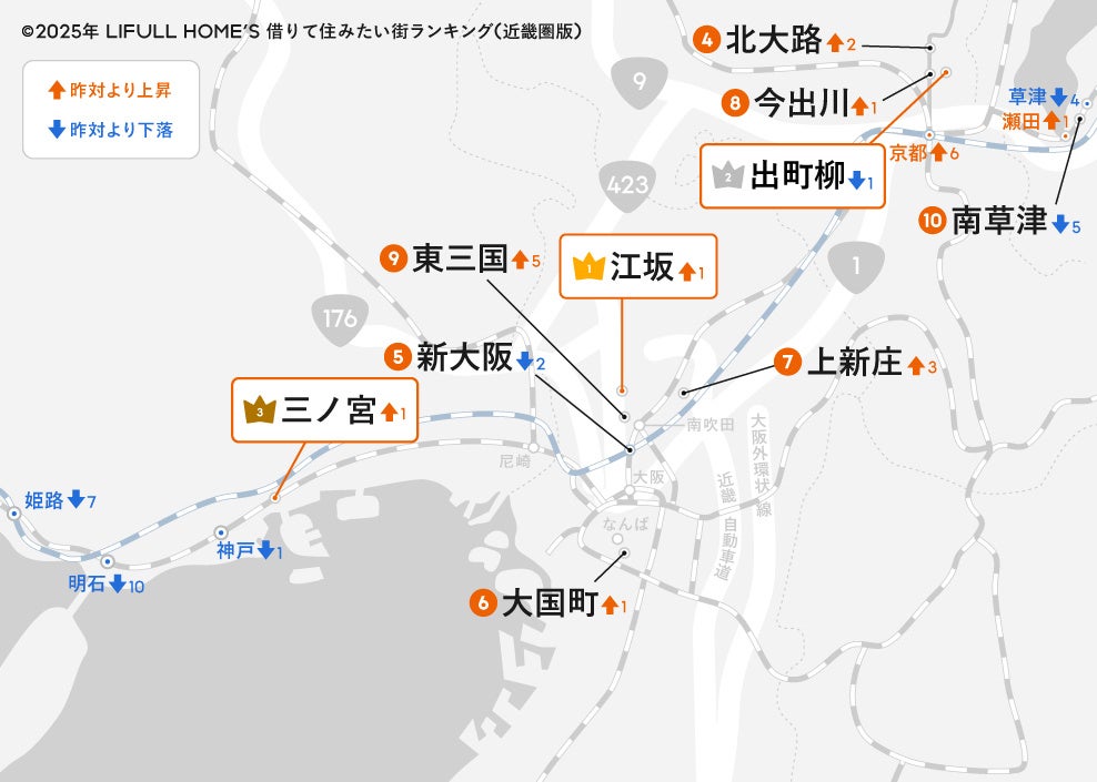<借りて住みたい街>「江坂」「出町柳」「三ノ宮」の“3強”がトップ争い 2025年は「江坂」に軍配