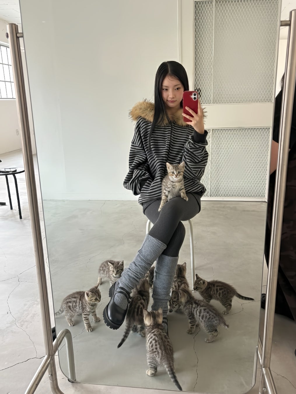 中でも、猫を大胆にプリントしたミニ丈TシャツはSNSでも話題となり、ブランドを象徴するアイテムとして支持を集めています。
