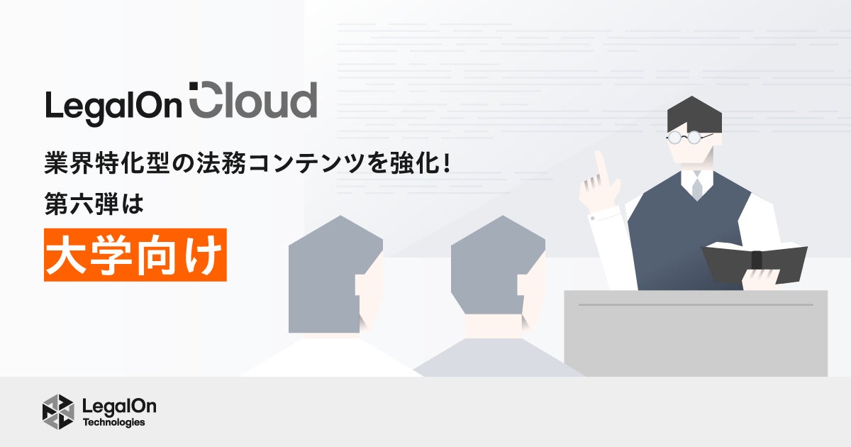 株式会社LegalOn Technologies(本社:東京都渋谷区 代表取締役 執行役員・CEO:角田 望)は、AI法務プラットフォーム「LegalOn Cloud」上で大学向けの法務コンテンツを強化いたします。業界特化型の法務コンテンツ強化は、運輸・物流業界、製薬業界、建築・建設業界、職業紹介・労働者派遣業界、ソフトウェア業界に続いて6業界目となります。