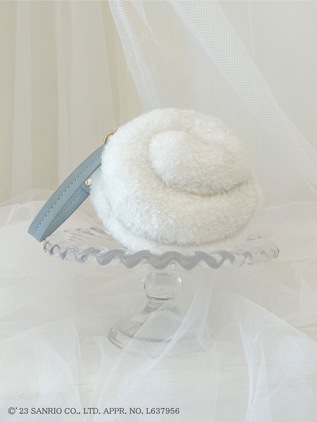空色をイメージした起毛生地のショルダーバッグは、大きなリボンからひょっこり顔を覗かせるシナモロールがポイント。それぞれのアイテムに、ブルーのリボンテープを添え、より可愛らしさをプラスしています。