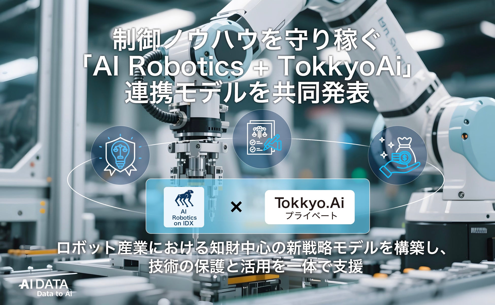 AIデータ社×リーガルテック社、制御ノウハウを守り稼ぐ「AI Robotics + TokkyoAi」連携モデルを共同発表