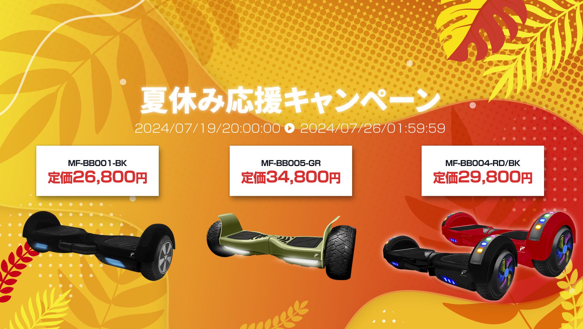 楽天市場「Show!t」では、7月19日(金)20:00~7月26日(金)01:59の期間中、MEISTER.F電動バランスボードセットを販売します。購入特典として、12,000円相当のキッズプロテクターまたはヘルメット(どちらを購入された場合でも収納バッグ、防水バッグをプレゼ)いたします。バランスボードは重心移動で操作可能で、バランス感覚を養うのに最適です。ぜひご家族でお楽しみください。