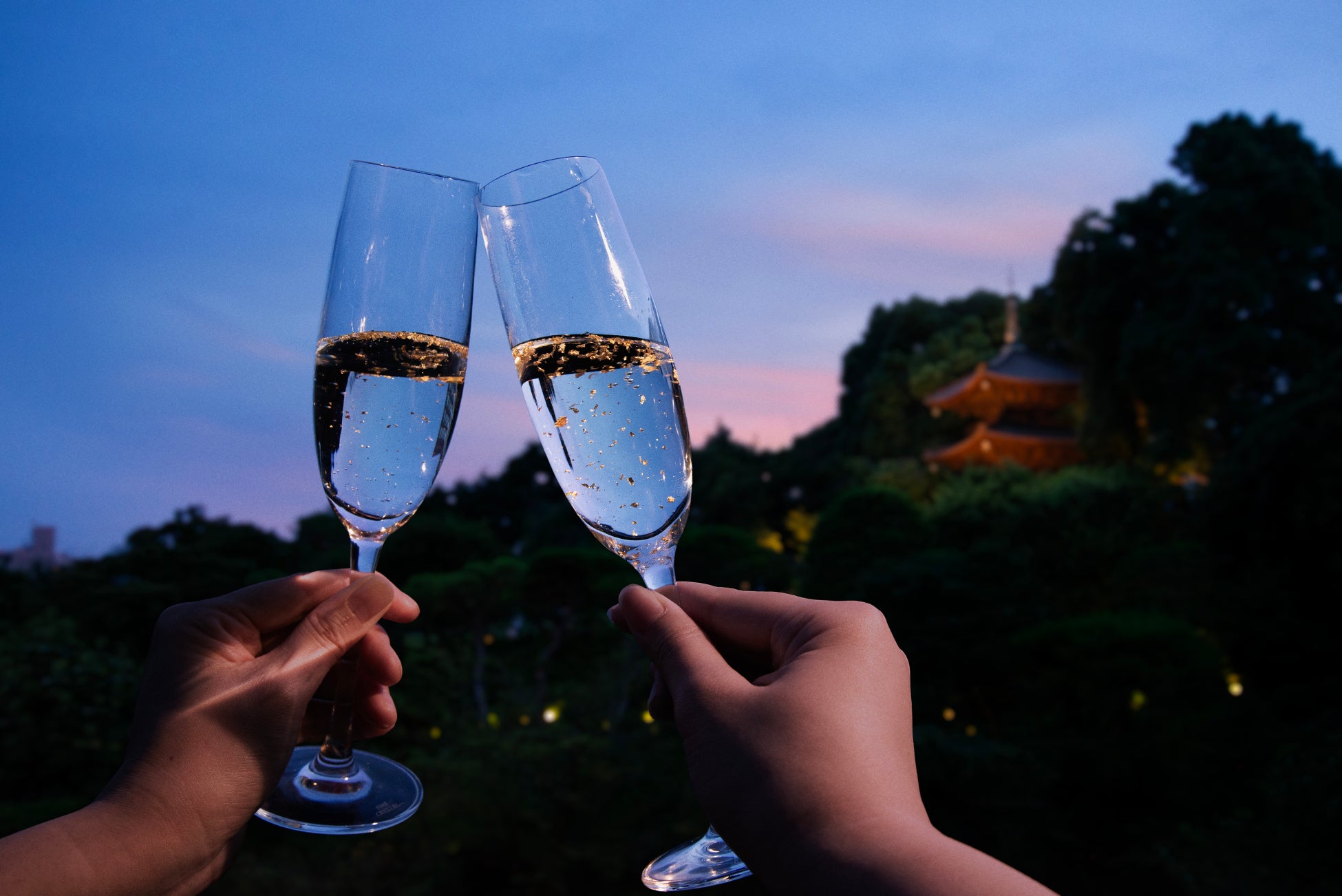 ウエルカムドリンクにはオスマンサスシロップをソーダで割った、特製ノンアルコールカクテル「オスマンサス・フィズ」に金箔をあしらってご提供いたします。テラスで「香る、東京雲海」の演出を楽しみながら、煌めき、金木犀香るドリンクでの乾杯をお楽しみください。