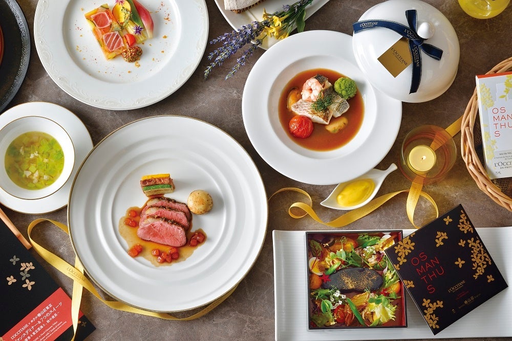 【ホテル椿山荘東京】L'OCCITANE×ホテル椿山荘東京のコラボレーション 9月18日スタートのコラボレーションディナーで人気フレグランス「オスマンサス」日本限定デザインの世界観を表現